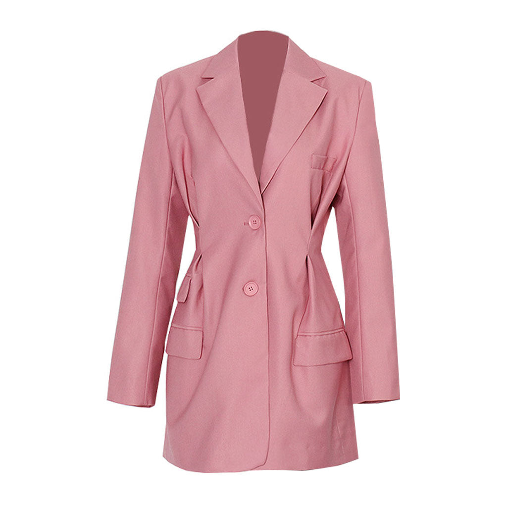 Dieser elegante und meisterhaft geschneiderte Blazer liegt voll im Trend. Sein raffiniertes Design besticht durch einen zeitlosen Reverskragen, lange Ärmel mit geknöpften Manschetten und schmeichelnde Faltendetails, die die Taille betonen und die Figur betonen. Der einreihige Verschluss und die schlanke, taillierte Silhouette verleihen ihm einen raffinierten Touch. Die vielen Pattentaschen verleihen dem Ensemble sowohl praktische Funktionalität als auch ein auffälliges asymmetrisches Element. Ein Must-have für jede Business-Garderobe. Dieser vielseitige Designer-Blazer lässt sich vielseitig stylen und kreiert so eine Vielzahl eleganter Looks.