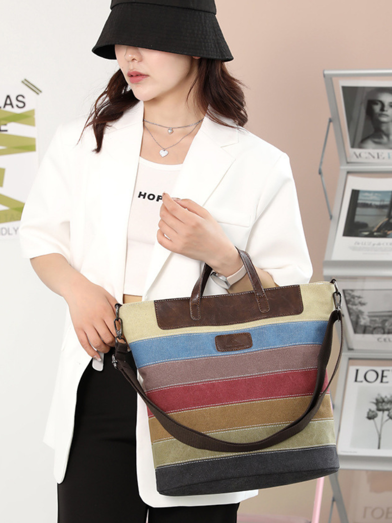 Die großen Damenhandtaschen von Close To My Heart sind stilvolle und funktionale Accessoires für die moderne Frau. Hergestellt aus strapazierfähigem Canvas-Material, sind diese Taschen langlebig und halten dem täglichen Gebrauch stand. Das Innenfutter aus Polyester sorgt für ein geschmeidiges und weiches Tragegefühl. Ein besonderes Merkmal dieser Handtaschen ist ihr geräumiger Innenraum, in dem problemlos A4-Zeitschriften und andere wichtige Dinge Platz finden. Perfekt für Arbeit, Schule oder Reisen. Das großzügige Format der Taschen bietet ausreichend Platz für all Ihre Habseligkeiten und sorgt dafür, dass alles übersichtlich und leicht zugänglich bleibt. Das Design dieser Handtaschen zeichnet sich durch einen urbanen, minimalistischen Stil aus. Die klaren Linien und die schlanke Silhouette verleihen ihnen ein modernes und schickes Aussehen und machen sie vielseitig genug, um zu vielen Outfits und Anlässen zu passen. Ob im Büro, beim Ausgehen mit Freunden oder beim Erledigen von Besorgungen – diese Taschen werten Ihren Look mühelos auf. Diese Handtaschen sind nicht nur stilvoll, sondern auch unglaublich bequem zu tragen. Dank ihrer Weichheit fühlen sie sich angenehm und leicht auf der Schulter oder in der Hand an.