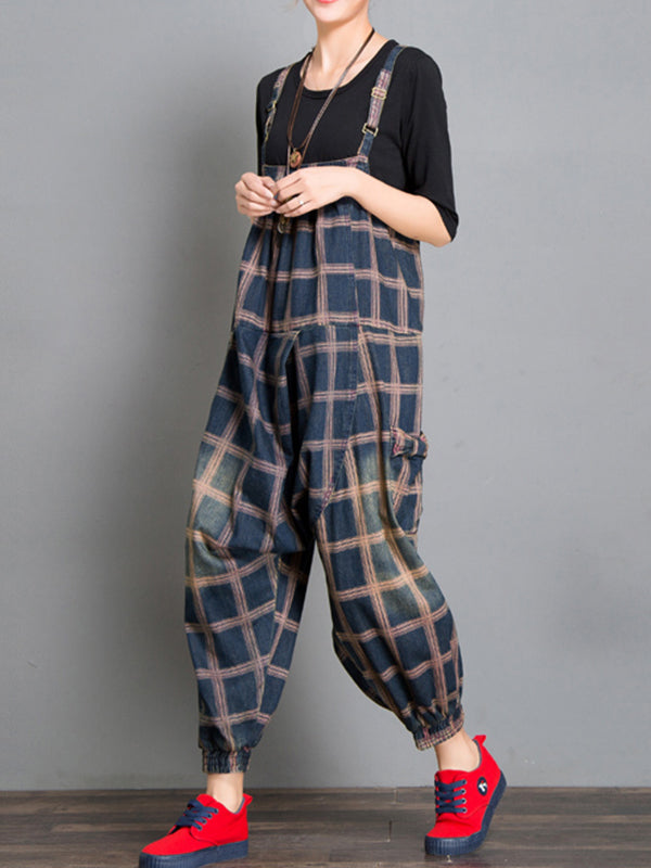 Suchen Sie einen stylischen und bequemen Overall für Herbst und Winter? Dann sind Sie mit unserer Colleen Denim Harems-Latzhose mit Karomuster genau richtig. Aus weicher Baumwolle gefertigt, hält diese Latzhose Sie warm und sieht dabei modisch aus. Der Haremsstil und die Karomuster lassen diese Latzhose aus der Masse hervorstechen. Sie werden garantiert alle Blicke auf sich ziehen.