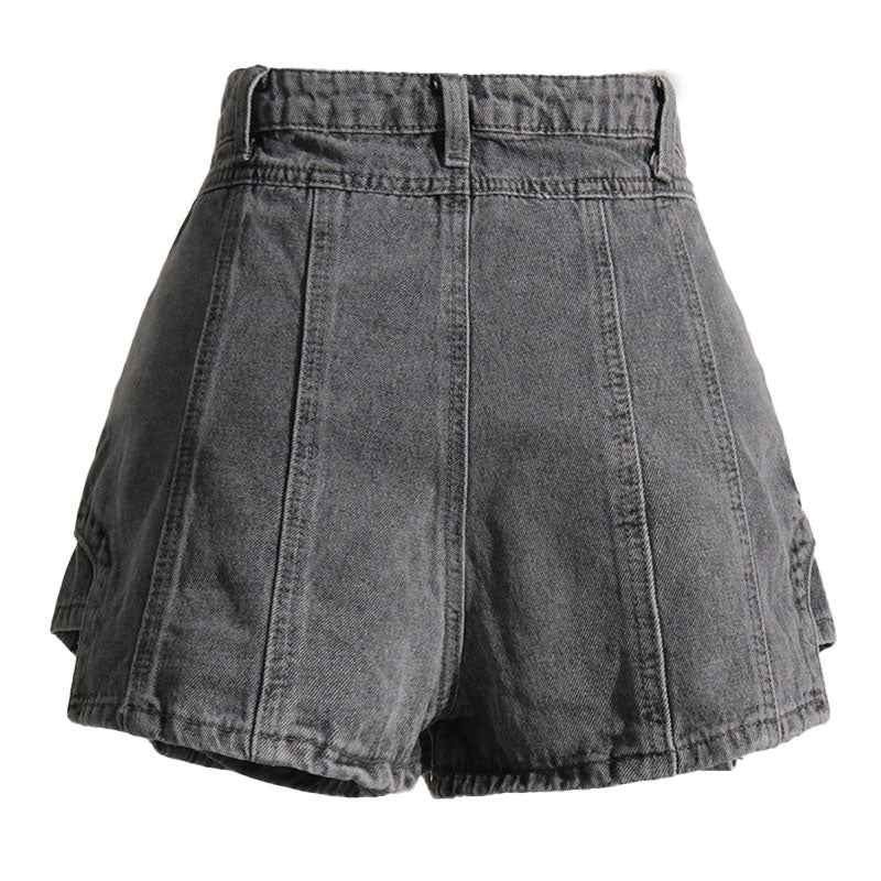 Die neue Designerkollektion von The Luxe bietet Jeansshorts mit einzigartigem, lässigem Look für tagsüber. Erhältlich in den hellblauen und grauen Farbtönen Ihrer Wahl. Dieser Designer-Skort verfügt über Gürtelschlaufen, Knopf- und Reißverschluss sowie zwei Fronttaschen. Das mehrlagige Design erzeugt die Illusion eines Minirocks, der mit den fühlbaren, sichtbaren Nähten für minimalistische Verzierungen sorgt. Kombinieren Sie ihn mit einem schlichten T-Shirt und Sneakers und erleben Sie den angesagtesten Sommertrend.