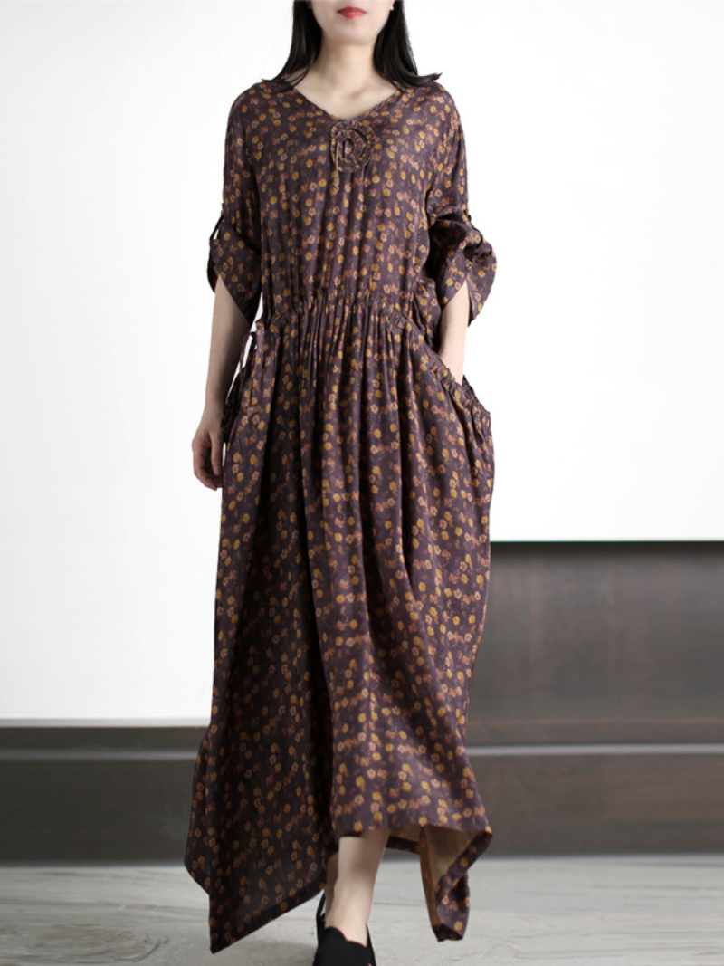 Das A-Linien-Kleid für Damen ist ein stilvolles und bequemes Kleidungsstück, das Eleganz und Raffinesse ausstrahlt. Dieses Kleid aus einer hochwertigen Mischung aus Viskose und Maulbeerseide hat eine luxuriöse und glatte Textur, die sich unglaublich weich auf der Haut anfühlt. Die Viskose bietet Atmungsaktivität und Komfort, während die Maulbeerseide dem Stoff einen Hauch von Opulenz und Glanz verleiht. Das Kleid hat einen klassischen Rundhalsausschnitt, der dem Design eine zeitlose Note verleiht und es für verschiedene Anlässe geeignet macht. Die einzigartige kaffeeviolette Farbe verleiht dem Outfit einen Hauch von Reichtum und Einzigartigkeit und lässt es aus der Masse hervorstechen. Mit seinem Pendlerstil ist dieses Kleid perfekt für Frauen, die viel unterwegs sind. Es bietet sowohl Mode als auch Funktionalität.