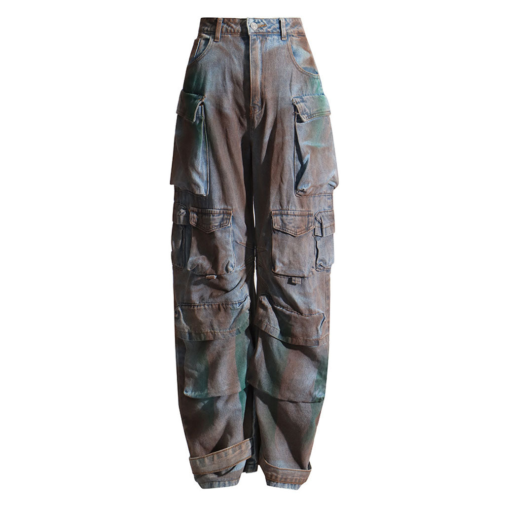 Diese übergroße Cargohose aus Denim in Camouflage ist ein echter Hingucker – perfekt für den verspielten Streetstyle-Look! Die Hose besticht durch geschwungene Beine, die die Länge stapeln, und bietet zahlreiche Taschen, darunter klassische Five-Pocket- und Cargo-Taschen. Hier dreht sich alles um den Swag-Faktor! Mit Reißverschluss und Knopf hat diese Hufeisen-Jeans einen hohen Bund und weite Öffnungen. Zusätzliche Riemenakzente sorgen für zusätzlichen Flair. Lass dir diese Camouflage-Schönheit nicht entgehen!