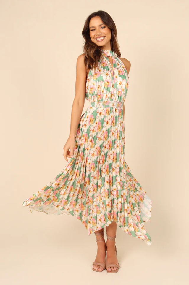 Das Dominique ist ein elegantes Neckholderkleid mit plissiertem Saum und Cut-Outs für einen Hauch von Verspieltheit. Raffungen sorgen für eine atemberaubende Silhouette. Die Knopfleiste vorne sorgt für bequemes Tragen. Perfekt für ein Date oder besondere Anlässe. Die feinen Falten und das Satin-Finish verleihen Ihnen ein stilvolles Gefühl.