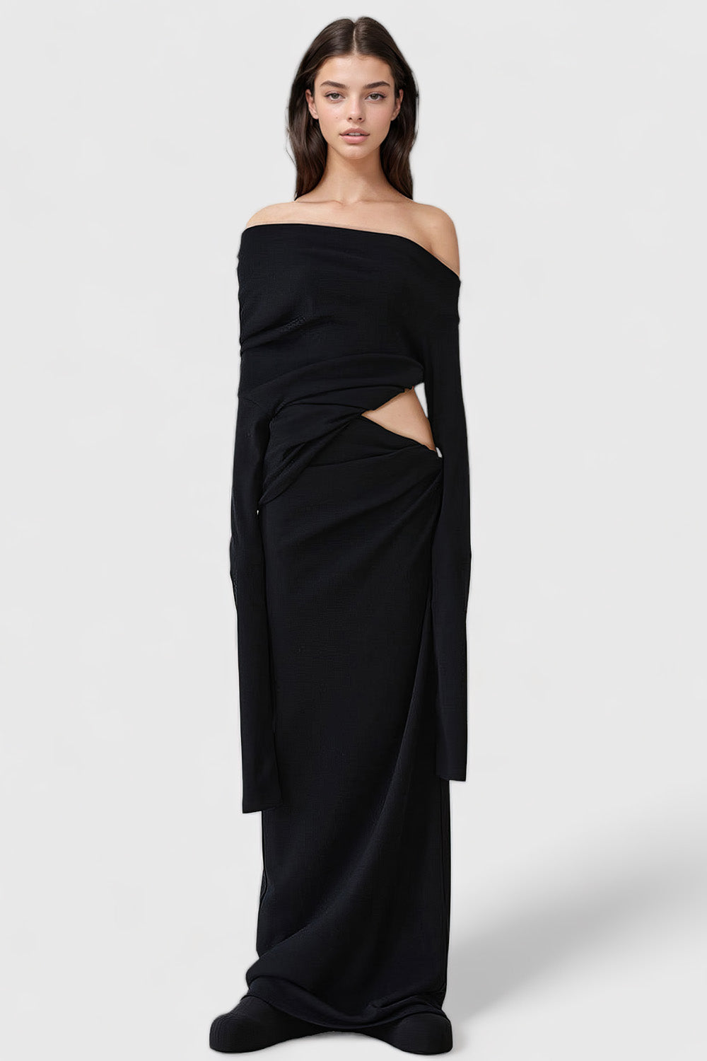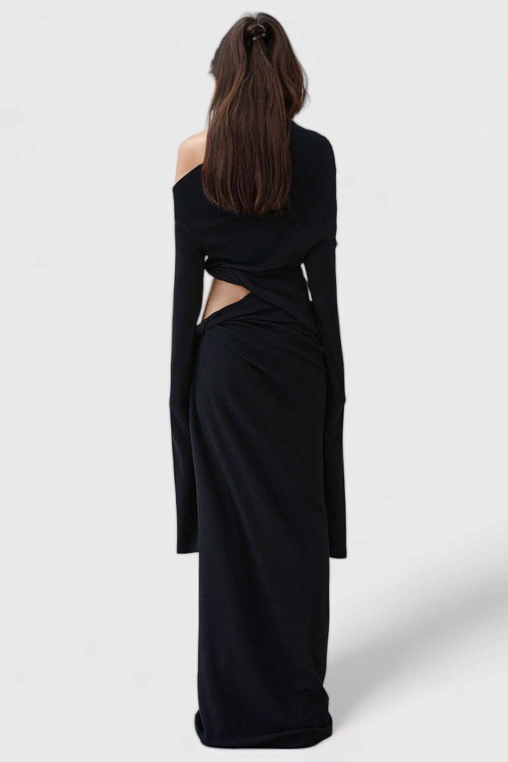 Mit diesem eleganten Zweiteiler erzielen Sie einen mühelosen, schicken Look. Das Set aus dehnbarem Material besteht aus einem langärmligen Oberteil mit unregelmäßigem Saum und extra langen Ärmeln sowie einem Maxirock mit unregelmäßiger Taille.