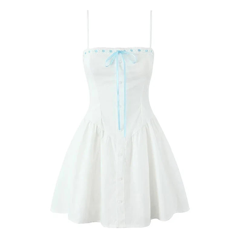 The Francesca Dress is a stunning combination of comfort and style. It features a flattering fit with a delicate blue ribbon tie detail and button-up front. Perfect for any casual day out or a relaxed evening. this dress provides both ease and elegance with a simple. yet refined design. The versatile white color adds a fresh. timeless charm to any wardrobe.