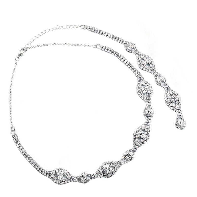 Diese Halskette mit Kulissenmotiv ist eines unserer königlichsten Modelle. Das glitzernde Statement-Stück besticht durch Zirkonia und Kristalle unterschiedlicher Größe und sorgt für einen prachtvollen Look, der Ihnen an Ihrem großen Tag Glück verspricht. Sie ist versilbert, mit zweireihigen Strasssteinen besetzt und auf der Rückseite mit einem Kettenglied und einem Karabinerverschluss verziert. Die lange Kulissen-Kreation betont den Rücken. Sie ist ideal für rückenfreie oder rückenfreie Brautkleider. Lassen Sie sie an Ihrem großen Tag funkeln und strahlen – ein garantierter Hingucker.