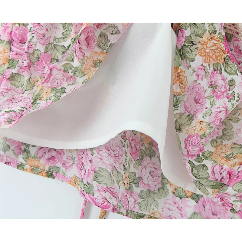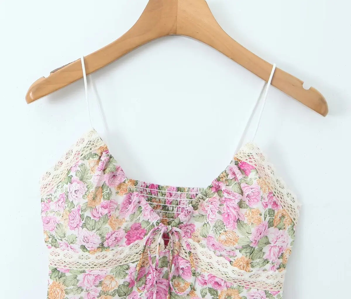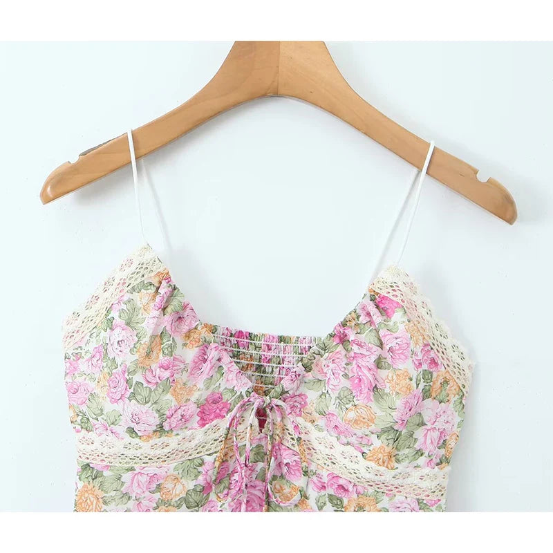 The Luminescent // Top is a beautifully designed top featuring floral print with adjustable ties and lace details. It has a flattering fit with a lightweight feel. perfect for warmer seasons.