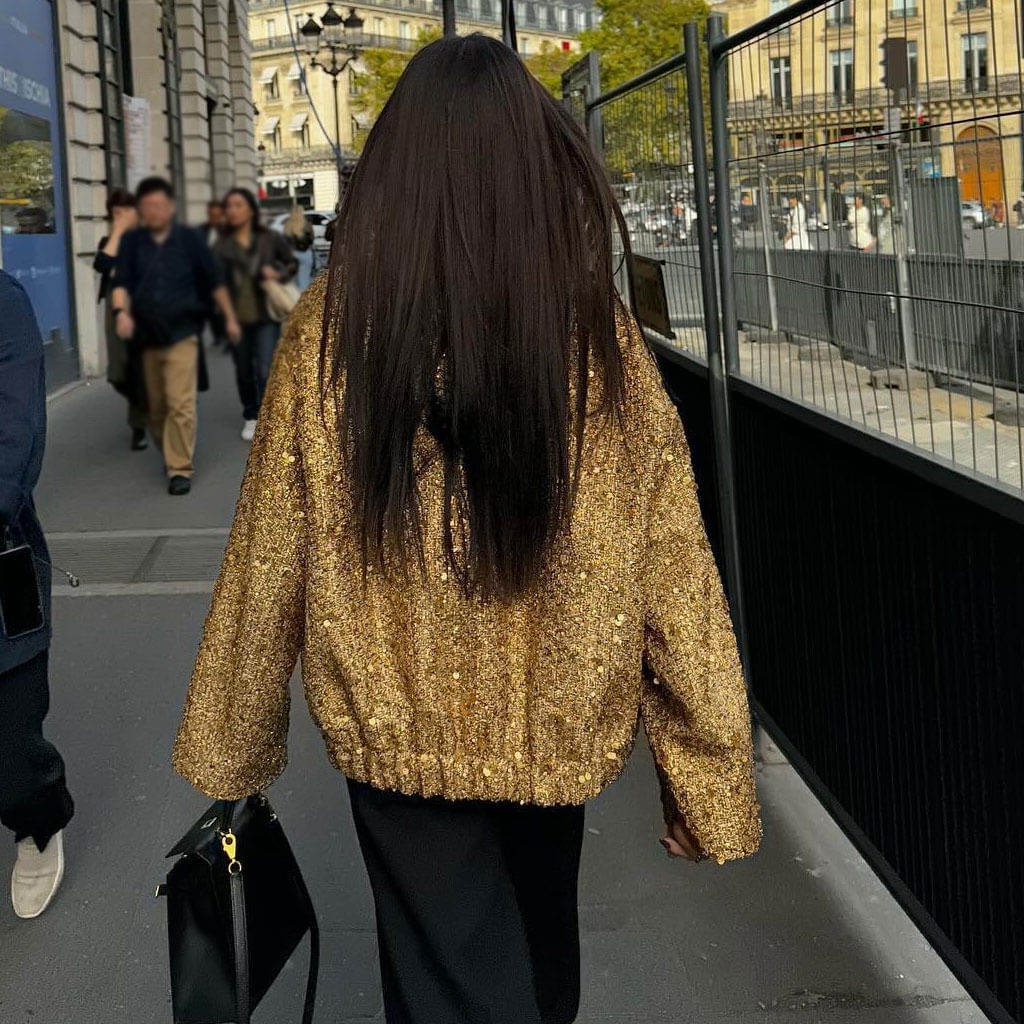 Verziert mit leuchtenden Metallfäden und schimmernden Pailletten versprüht diese funkelnde Designerjacke mit Pailletten einen unvergleichlichen und fesselnden Charme. Mit dem Stehkragen und der verdeckten Druckknopfleiste vorne definieren Sie Ihren Stil mühelos neu. Die markanten Cargotaschen mit Patte und die dazugehörigen Seitentaschen setzen die Szene perfekt in Szene. Der elastische, gerüschte Saum formt mühelos eine fließende Silhouette. Er harmoniert perfekt mit der Oversize-Passform und sorgt für einen unbestreitbar schicken Look. Verleihen Sie Ihren Basics damit Luxus.