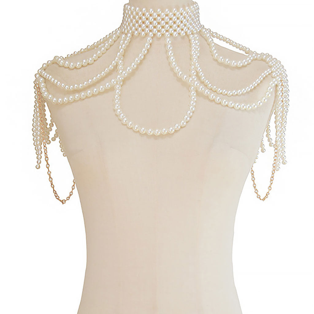 Für einen traumhaften Brautlook. Kombinieren Sie unsere Designer-Körperkette mit Kunstperlen – Ihre Geheimwaffe für Stil. Sie dient gleichzeitig als modisches Statement-Halsband mit Perlenketten und goldfarbenen Gliedern. Die perfekte Ergänzung zu Ihrem Tube-Kleid für einen extra Hauch von Glamour!