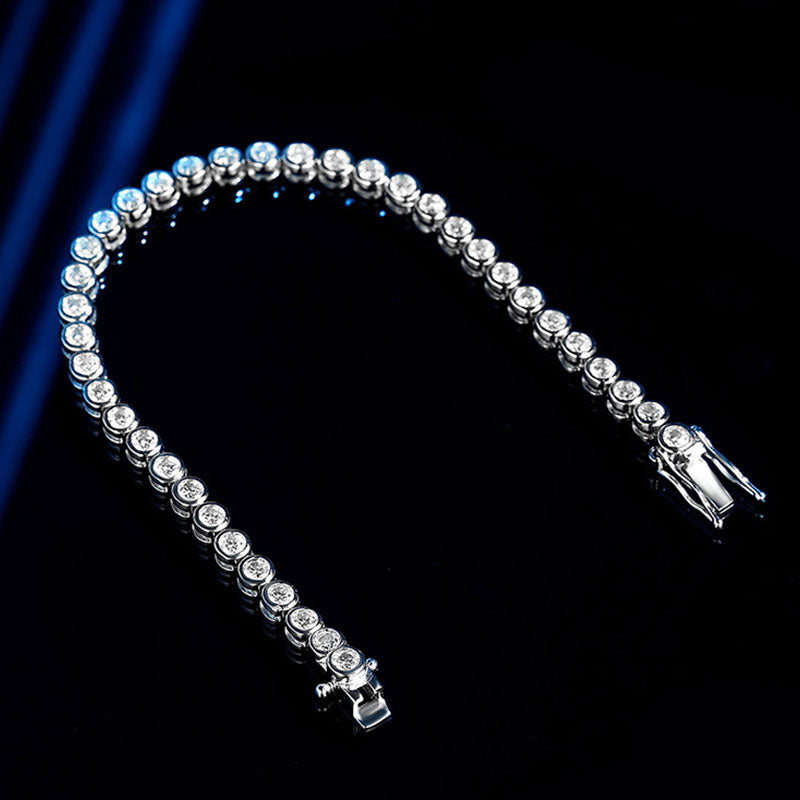 Betonen Sie Ihre Brillanz mit diesem atemberaubenden Designer-Tennisarmband. Seine exquisite Schönheit und die robuste Konstruktion machen es zu einem Symbol ewiger Liebe und Bewunderung. Gönnen Sie sich dieses herzliche Geschenk, das bei jedem Tragen Wärme und Zuneigung ausstrahlt.