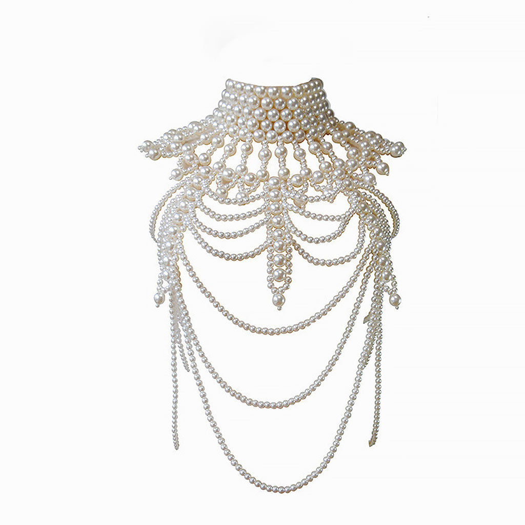 Die auffälligen Kunstperlen verzieren das Halsband. Mit zierlichen Kunstperlen auf der Schulter verwoben. Passend zu diesem Designer-Kettenumhang mit mehreren Perlen. Lässt sich mühelos drapieren und übereinander tragen. Erzeugt eine leuchtende Illusion um Ihren Hals. Passt zu jedem Anlass.