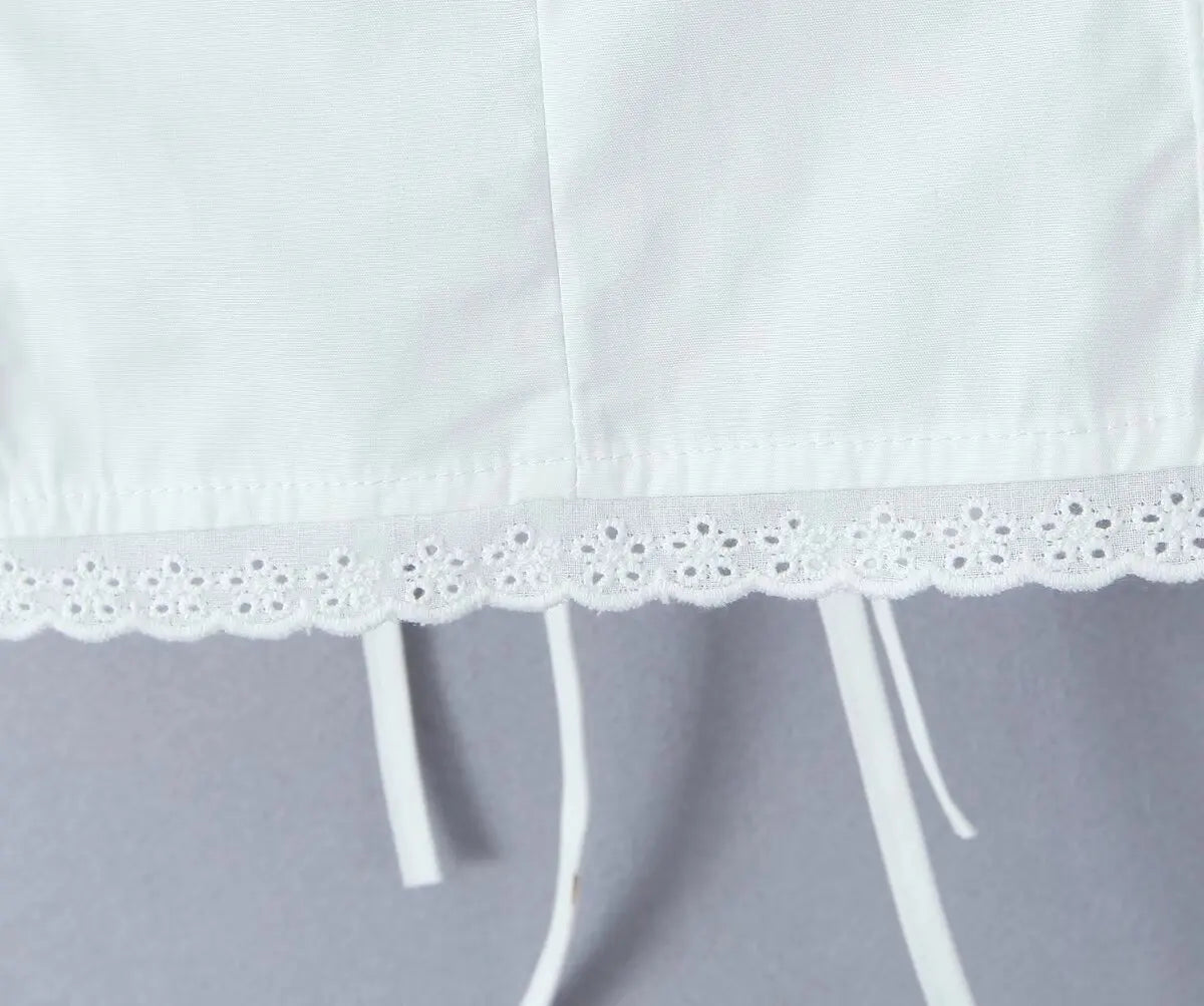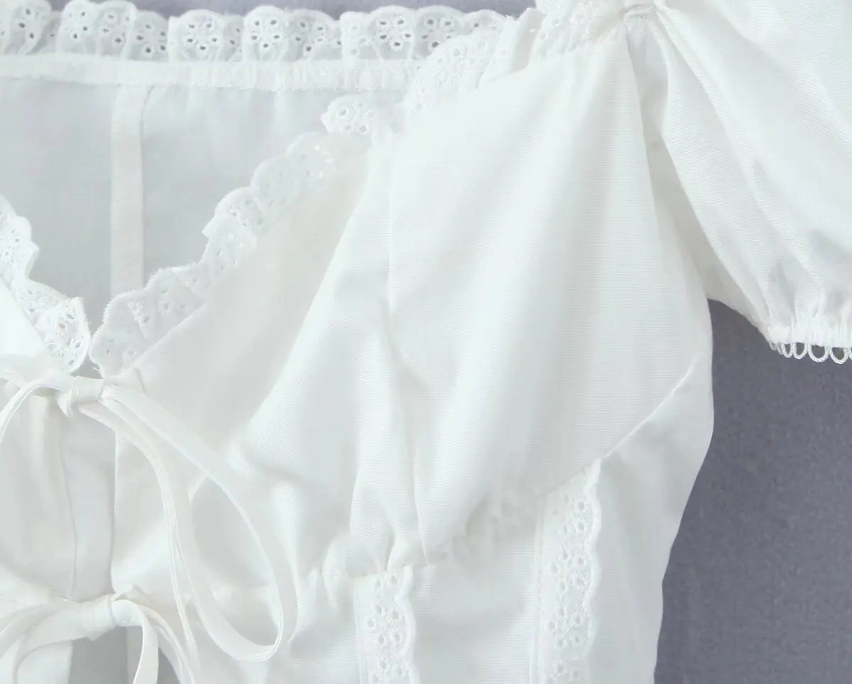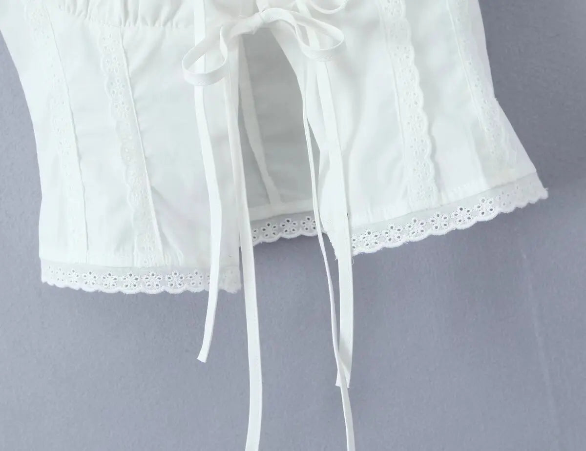 The Memories Top is a romantic and feminine blouse with puffed sleeves and a lace trim. The corset-style tie front adds an elegant touch. making it perfect for casual outings or special occasions. Its lightweight. breathable fabric ensures comfort while maintaining a flattering silhouette.