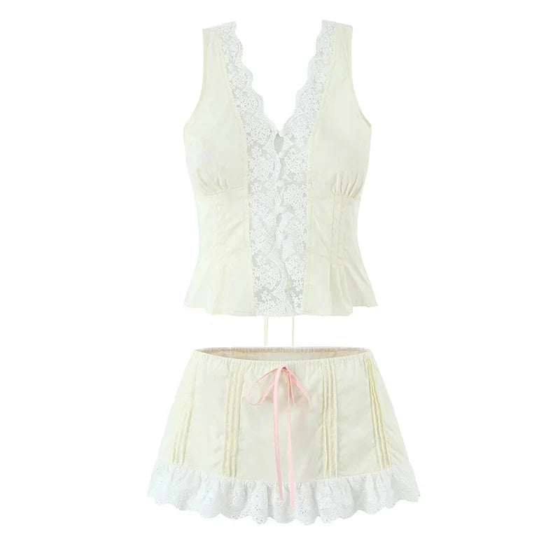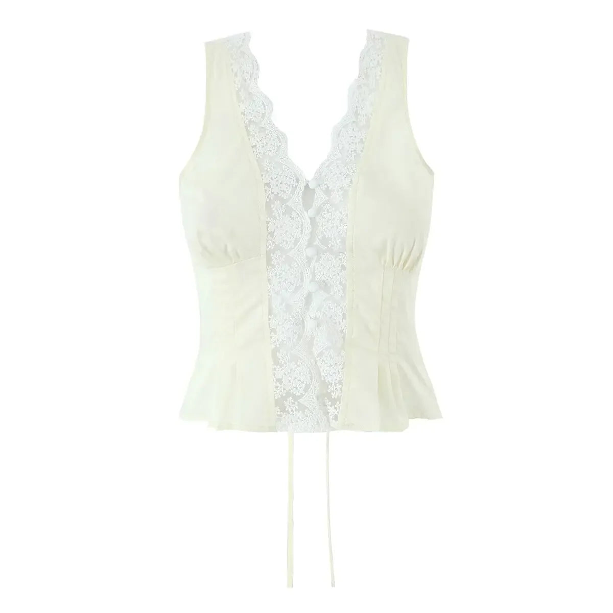 The **Mina Top** features a delicate lace-up design with a romantic lace finish. The adjustable fit and structured bodice provide a flattering silhouette for any occasion.