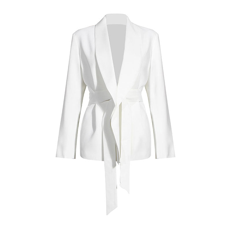 Die weiße Crêpe-Variante unserer Designermarke besticht durch ihre elegante Interpretation und verleiht Ihrer Garderobe einen faszinierenden Look. Dieser weiße Anzug verleiht Ihrer Garderobe dank seines schicken Schalkragens, der stark gepolsterten Schultern und der langen Ärmel mit geknöpften Manschetten eine minimalistische Ästhetik. Der passende Gürtel, der durch die Knopfleiste gezogen wird, betont die Taille und strahlt eine einzigartige Modernität aus. Er ist das perfekte Basic für einen etwas eleganteren Auftritt und passt hervorragend zu den Knöchelhosen aus unserer Designerkollektion.