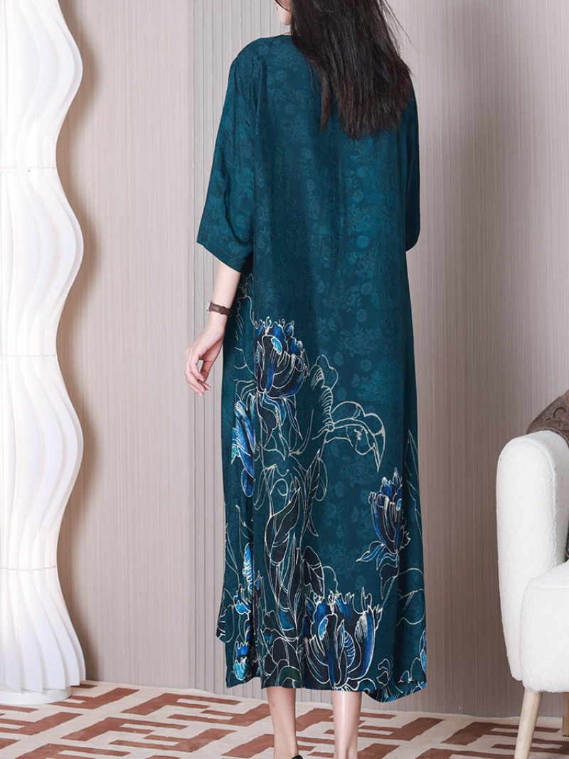 Ein lockeres A-Linien-Kleid mit kurzen Ärmeln und Rundhalsausschnitt ist eine bequeme und entspannte Option für alle, die stilvoll aussehen und sich gleichzeitig wohlfühlen möchten. Dieses Kleid zeichnet sich durch eine lockere Passform mit kurzen Ärmeln und rundem Ausschnitt aus. Die A-Linien-Silhouette ist ab der Taille ausgestellt und schafft eine feminine und schmeichelhafte Form, die perfekt für legere Anlässe ist. Die lockere Passform und der entspannte Stil machen es zu einer bequemen Option für alle Figurtypen. Kombinieren Sie es mit Sneakers oder Sandalen für einen lässigen Look oder mit High Heels und auffälligem Schmuck für einen eleganteren Look.