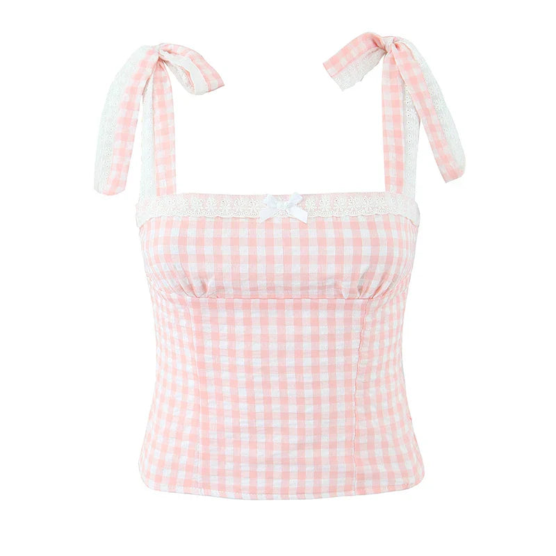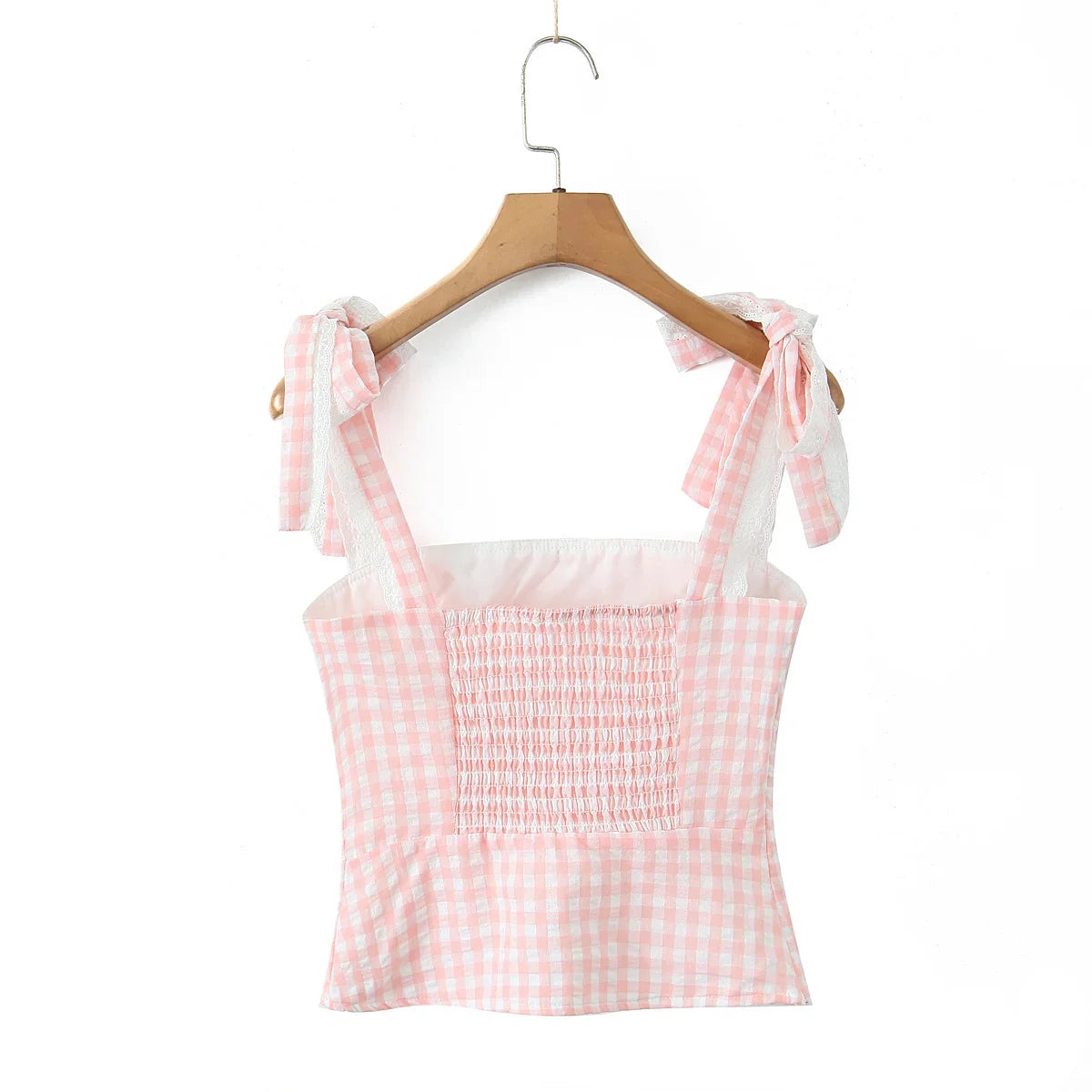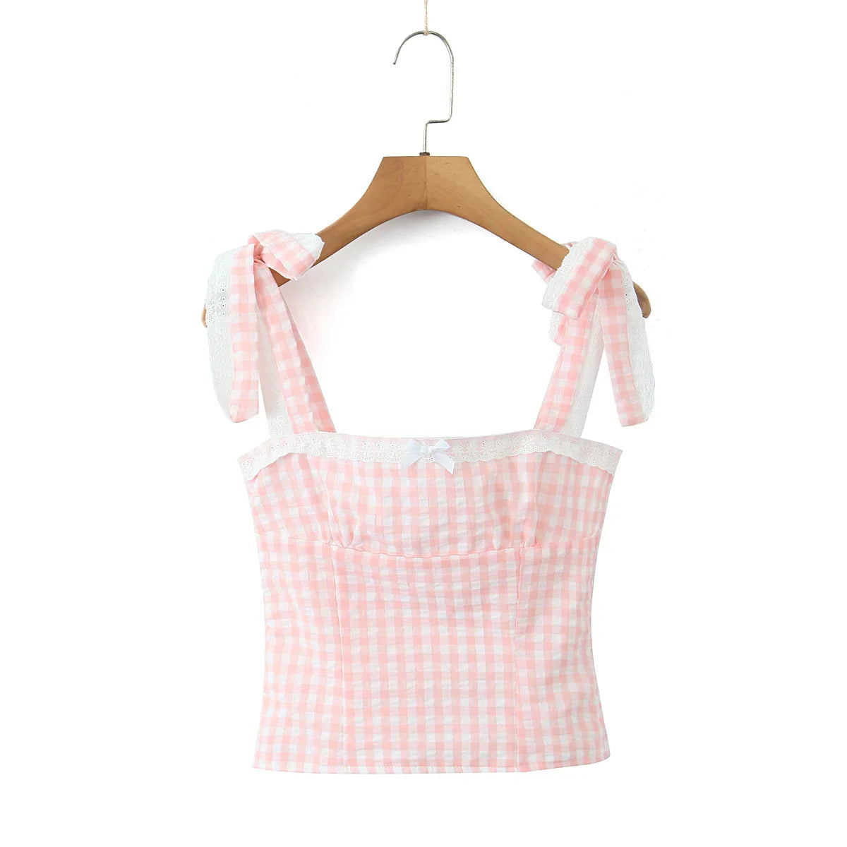 The **Nitsan Top** is a charming checkered blouse. perfect for casual outings or layering in warmer weather. The bow and lace accents add a playful. feminine touch to the look.