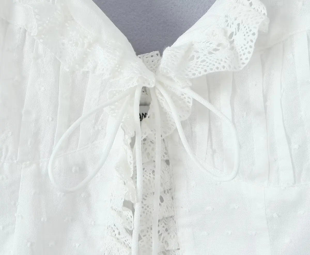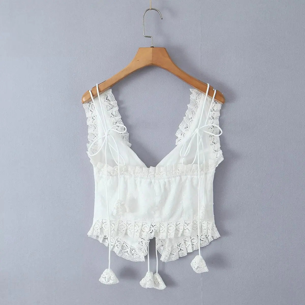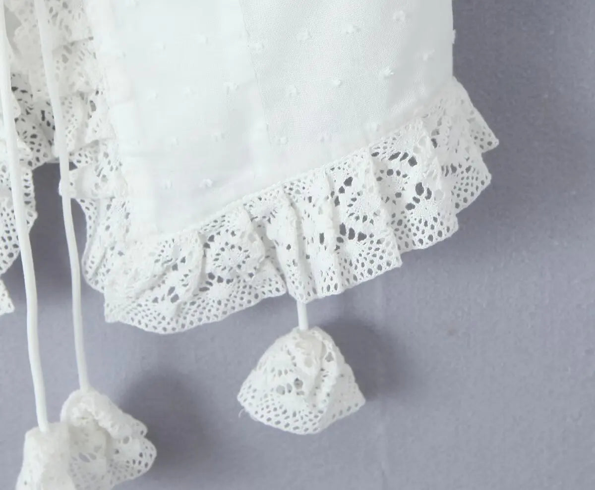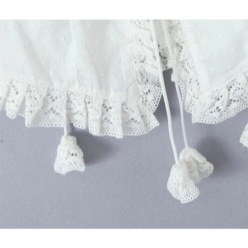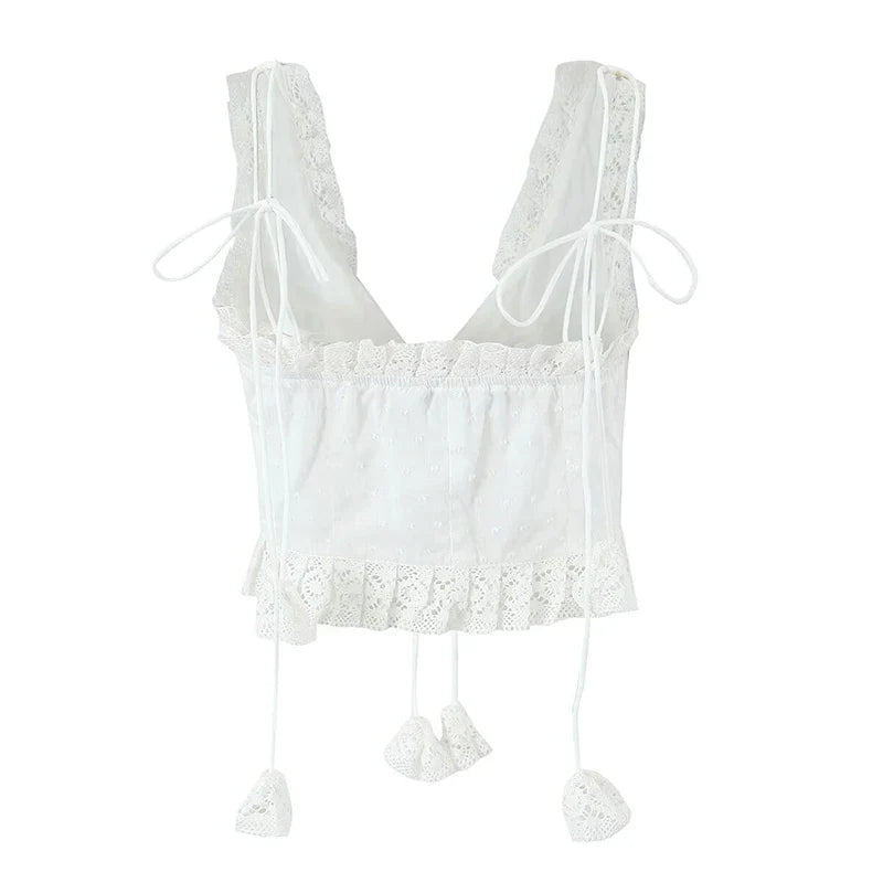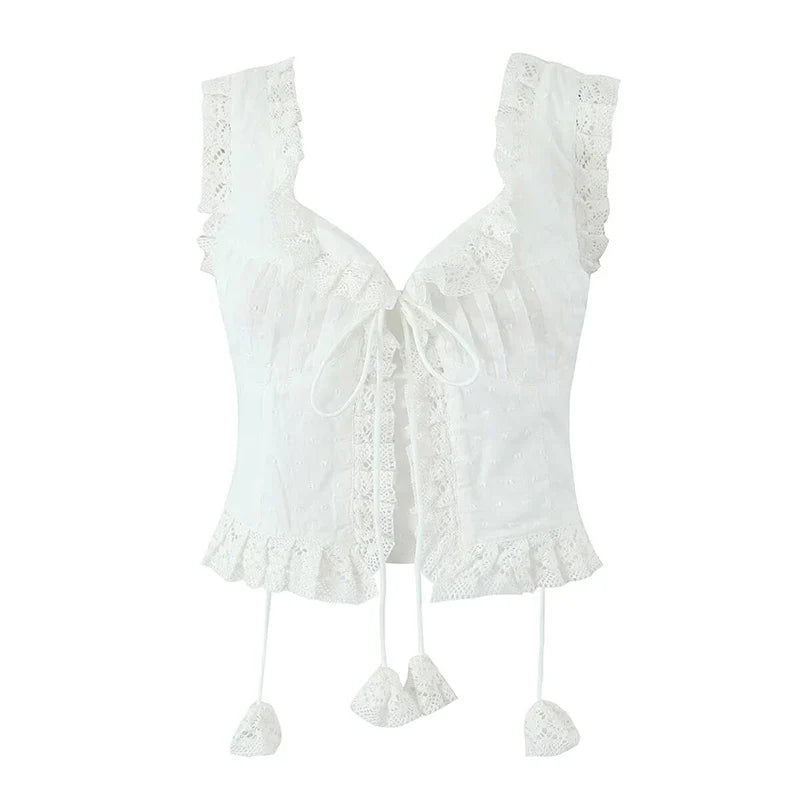 The **Ocean Life Top** is perfect for sunny days by the beach or casual outings. Featuring delicate lace trims and a flattering tie front. it gives off a playful yet elegant vibe. Its soft fabric ensures comfort all day long.