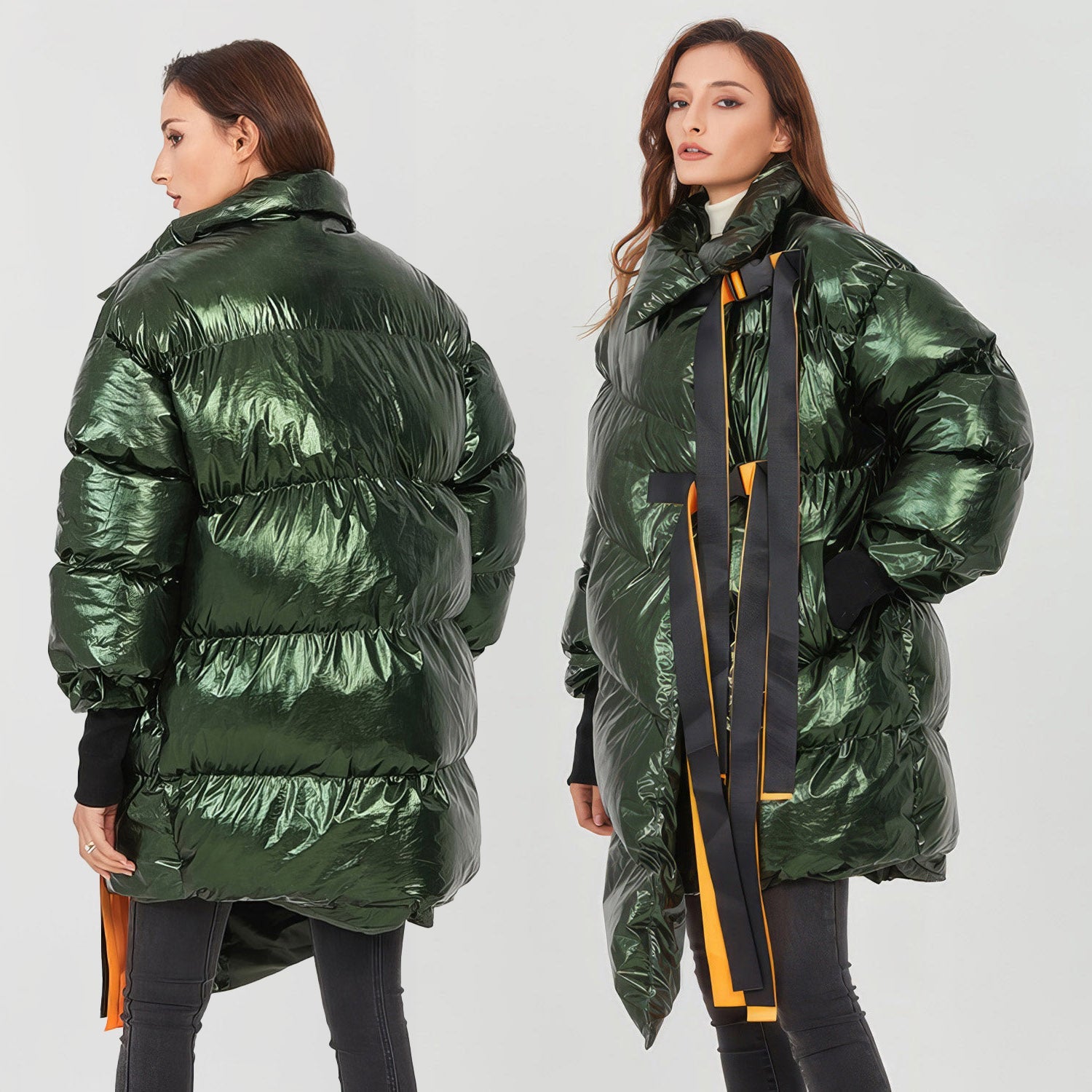 Mit dieser übergroßen Pufferjacke bleiben Sie stilvoll warm. Der unregelmäßige Saum und der hohe Ausschnitt sorgen für maximale Wärme. Ideal für kalte Wintertage.