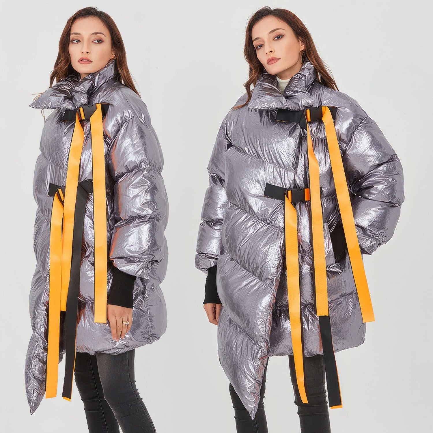 Mit dieser übergroßen Pufferjacke bleiben Sie stilvoll warm. Der unregelmäßige Saum und der hohe Ausschnitt sorgen für maximale Wärme. Ideal für kalte Wintertage.