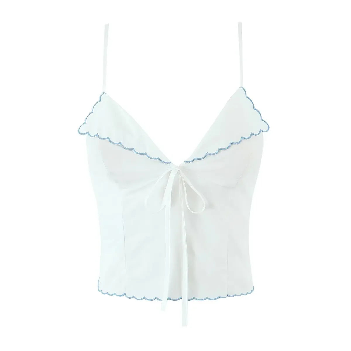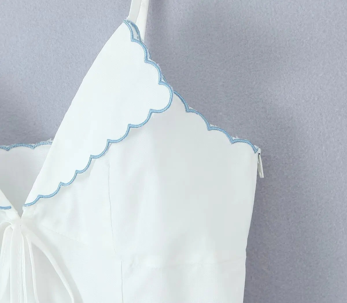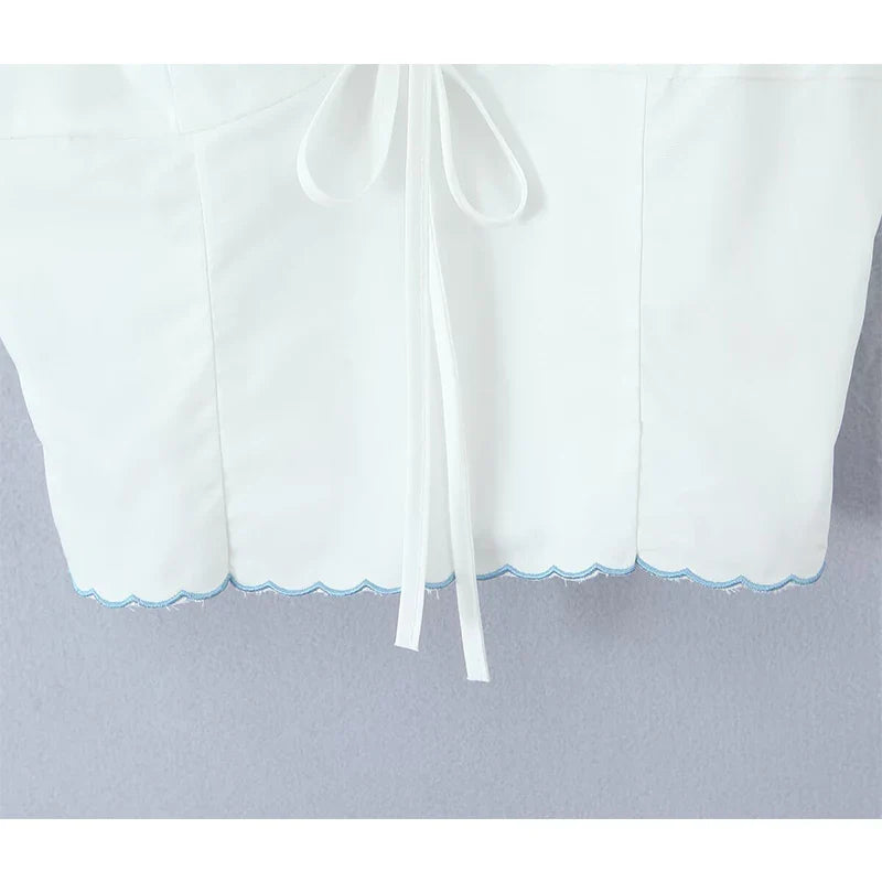 The Avaia // Dress is a romantic. lace-embroidered mini dress with a soft. vintage-inspired silhouette. A cinched bodice. and a delicate bow tie detail create an effortlessly feminine look for warm days and garden moments.