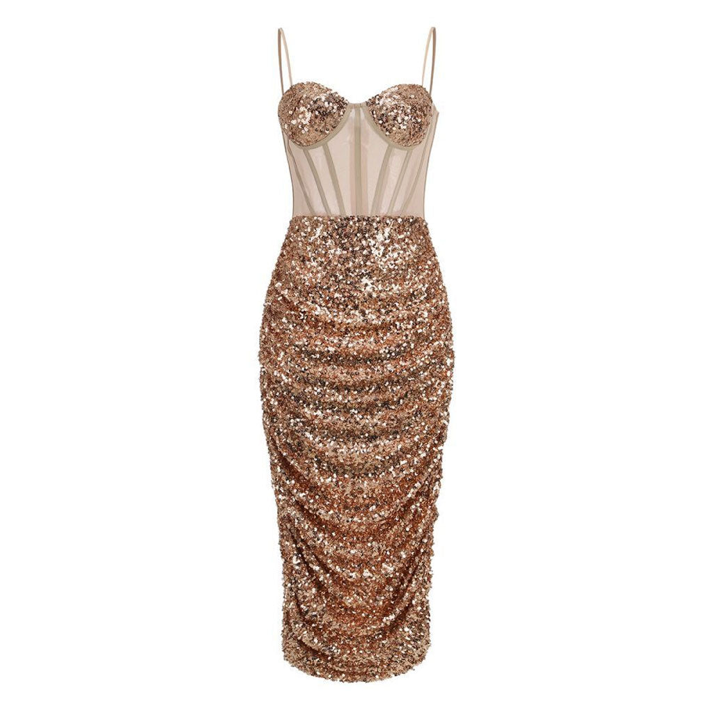 Unser Designerkleid in spritzigen, leuchtenden Farben ist mit glitzernden Pailletten bedeckt, die Ihnen mit viel Handwerkskunst und müheloser Leichtigkeit den perfekten Party-Look verleihen. Die leuchtende, taillierte Silhouette ist aus weichem, transparentem Netzstoff an der Taille geschnitten, der durch die stäbchenartigen Nähte betont wird und so für eine betonte Taille sorgt. Der herzförmige Ausschnitt ist sorgfältig mit vielen feinen Pailletten verziert und mit dem Bindeband können Sie die Passform perfekt anpassen. Die drapierten, gerüschten Details garantieren die begehrte Sanduhrfigur und ermöglichen mit dem Schlitz hinten viel Bewegungsfreiheit. Dieses atemberaubende Unterkleid mit Reißverschluss hinten sieht mit Stilettos bei Soireen tagsüber und abends fantastisch aus.