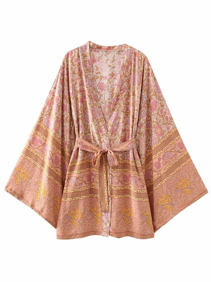 Vervollständigen Sie Ihren Look mit diesem Kimono mit Blumenmuster für zusätzliches feminines Flair. Kimono mit offener Vorderseite, Blumenmuster, 100 % Baumwolle.