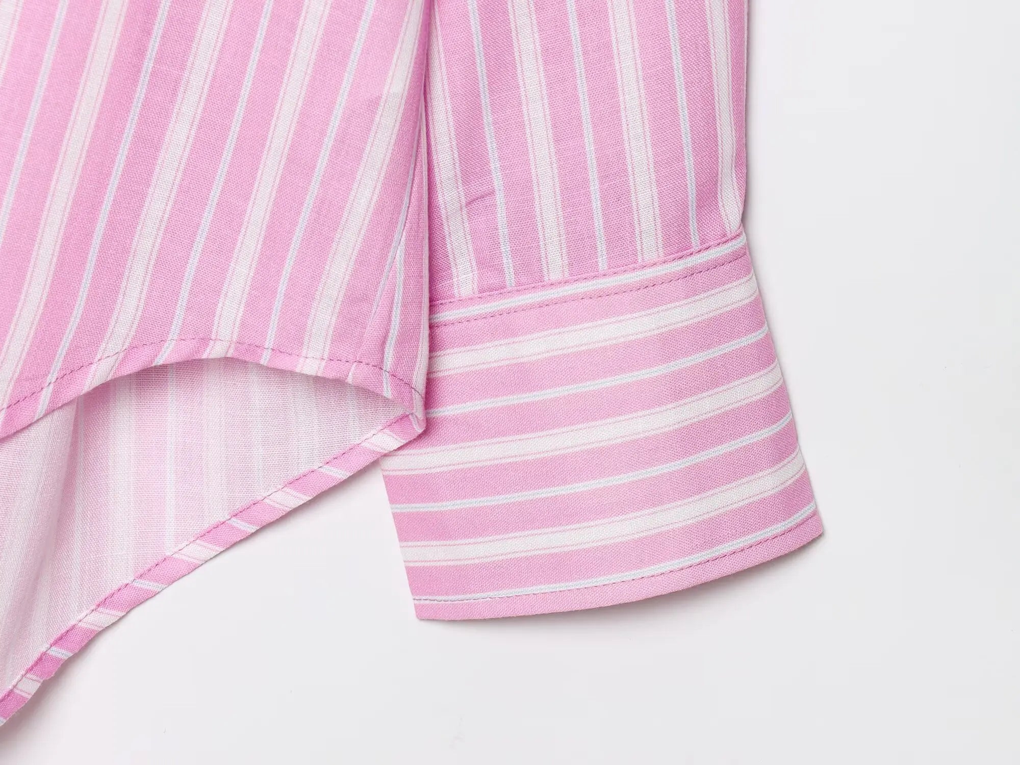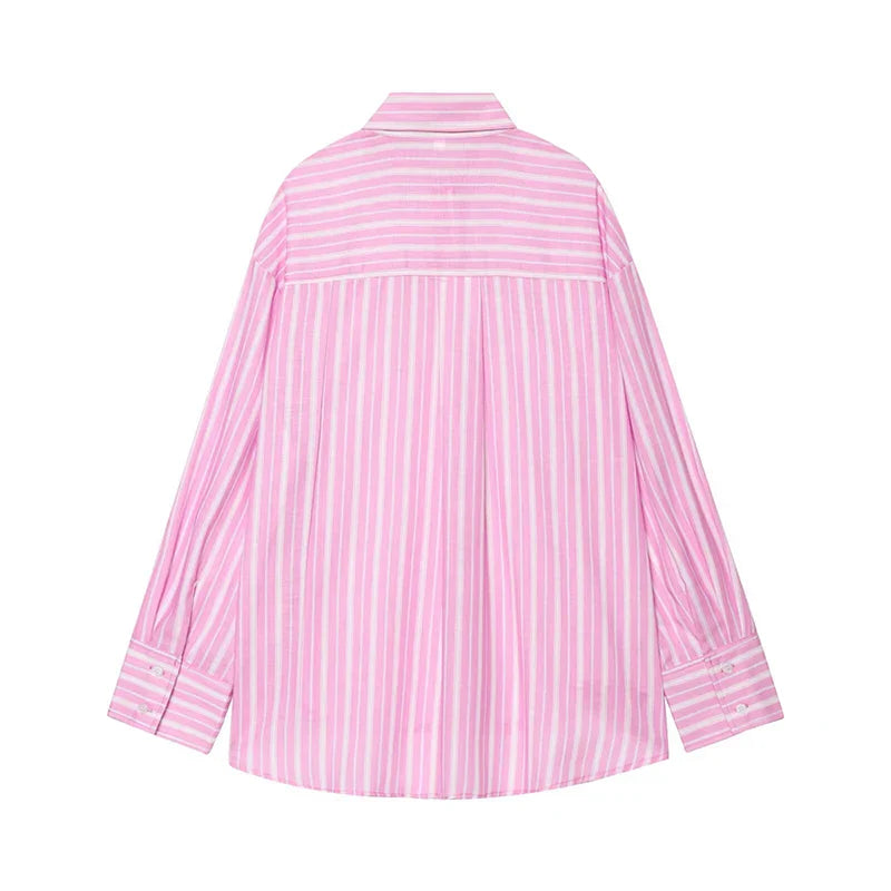 The Siesta // Shirt is the perfect blend of breezy comfort and laid-back elegance. With its pink striped pattern. oversized silhouette. and lightweight fabric. it pairs effortlessly with the Siesta Shorts or your favorite denim for an easy summer look.