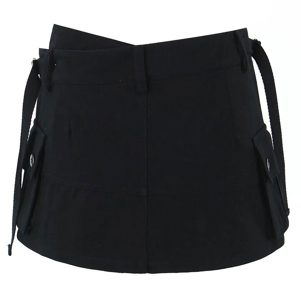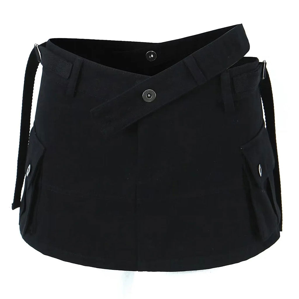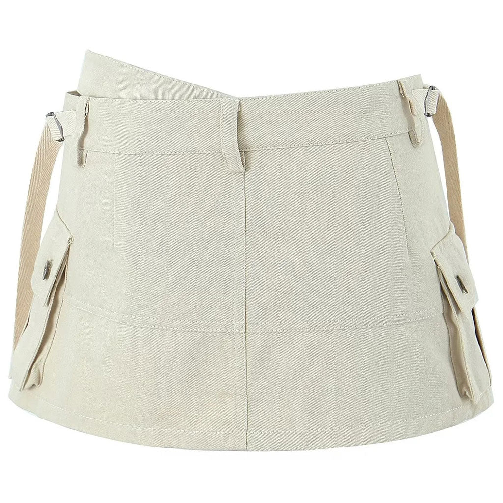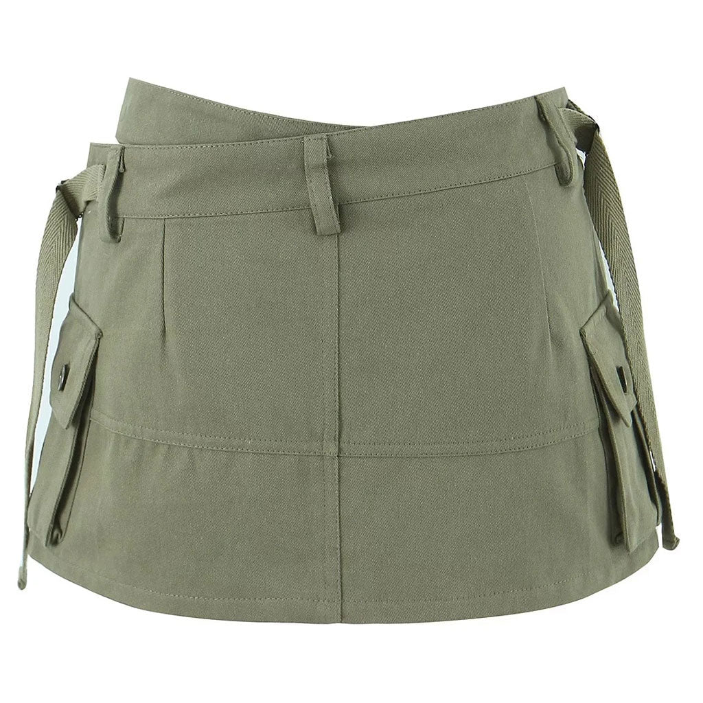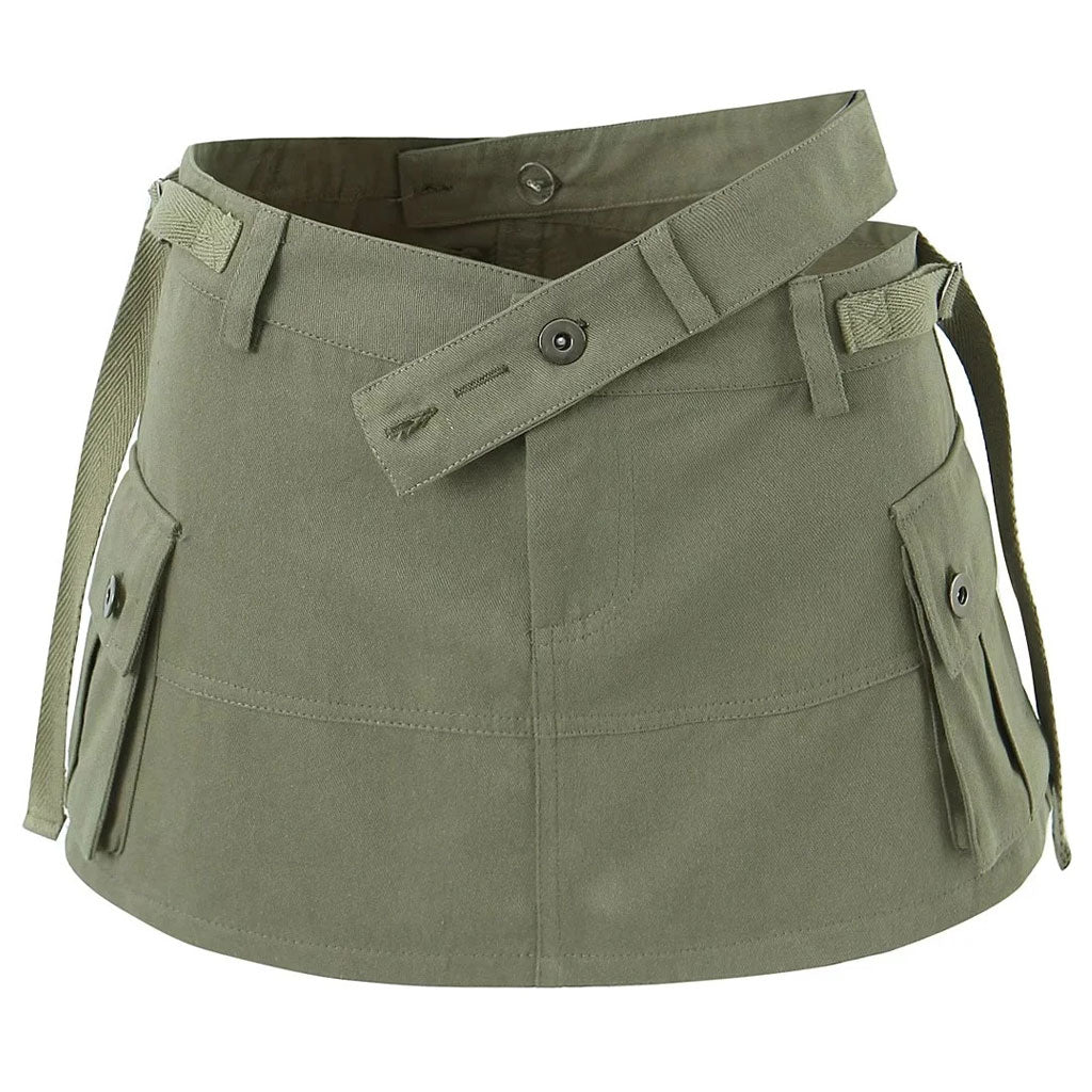 Klare Linien im utilitaristisch-schicken Stil. Dieser rockähnliche Skort ist ein Must-have, das Sie sich nicht entgehen lassen sollten. Hergestellt aus atmungsaktivem Baumwollmaterial in den Farbtönen Schwarz, Beige und Armeegrün zur Auswahl. Der Designer-Skort präsentiert einen Rockstil mit zwei großen aufgesetzten Taschen, seitlichen Riemen, Gürtelschlaufen und einem Hosenschlitz mit Knopf und Reißverschluss in der Mitte vorne. Der zusätzliche Taillengurt ist asymmetrisch gestaltet. Er ist außerdem abnehmbar und flexibel, um Ihnen die perfekte Passform zu bieten, wenn Sie Ihre Taille betonen möchten. Wir lieben die Abnäher auf der Rückseite, die die Kurven glätten und für eine äußerst schmeichelhafte Passform sorgen. Tragen Sie dieses vielseitige Basic mit einem figurbetonten bauchfreien Top und Cowboystiefeln für einen kompletten Look im Stil der frühen 2000er.
