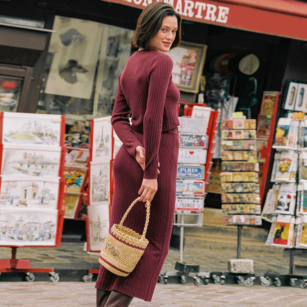 Dieses luxuriöse Zweiteiler-Set aus Wollmischung und Rippstrick ist ein praktisches Basic für Herbst und Winter. Es besteht aus einem Cardigan-inspirierten Pullover in verkürzter Länge, einem tiefen V-Ausschnitt mit Bindeband vorne und einer Knopfleiste vorne. Der Maxirock in schmaler Silhouette wird abgerundet durch eine hohe Taille mit Bindeband vorne und einen breiten Bund. Kombinieren Sie es mit Stiefeletten und einer Minitasche für einen schicken Look. Unsere Designer-Kollektion umfasst auch viele Vintage- und dennoch elegante Sets für Damenstrickmode.