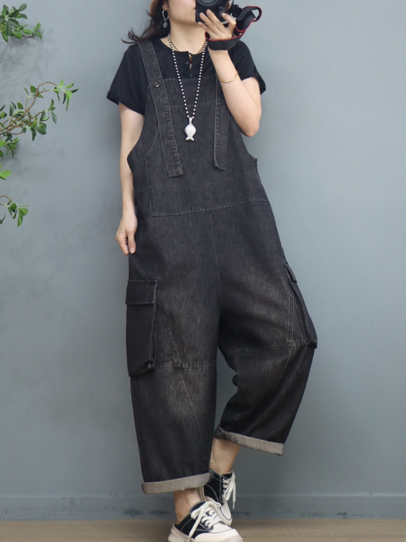 Denim Loose Large Size Stilvolle Latzhose Overalls mit Taschen