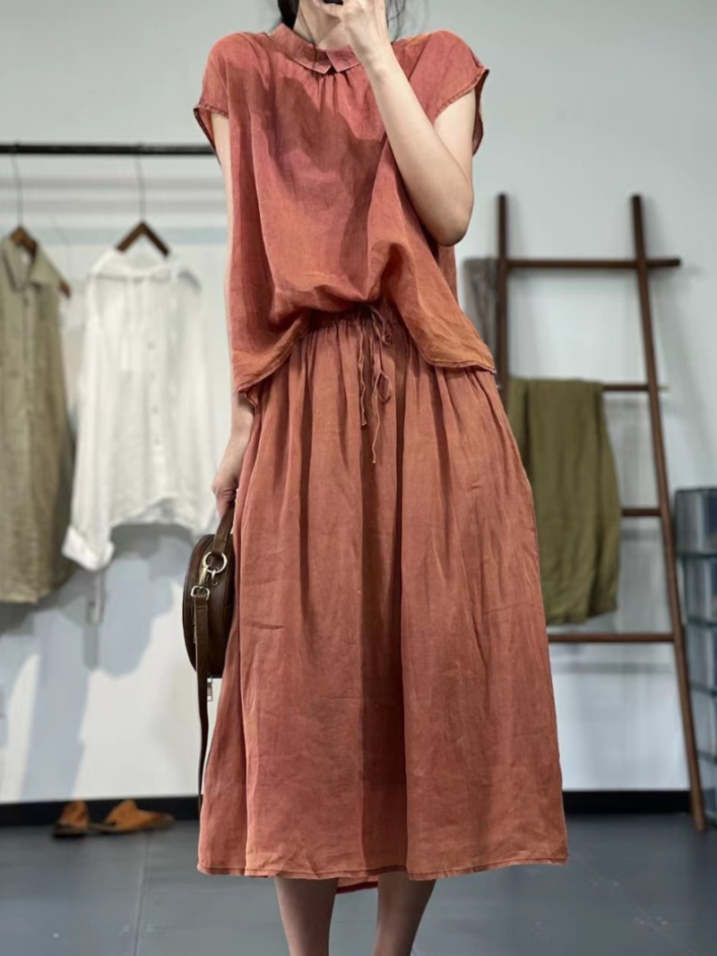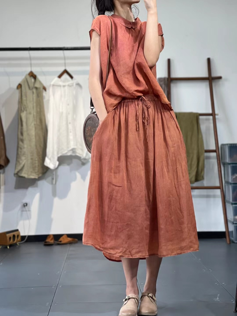 Damen-Kombis. Aus einem Baumwoll-Leinen-Mix gefertigt für ein bequemes und atmungsaktives Tragegefühl. Erhältlich in leuchtendem Orange und klassischem Schwarz. Diese Kombiteile sind perfekt, um Ihrer Garderobe einen Farbtupfer zu verleihen. Das Set enthält ein Oberteil und einen Rock. Sie können zusammen getragen oder mit anderen Teilen kombiniert werden. Größe M hat einen Brustumfang von 122 cm, eine Oberteillänge von 61–65 cm, eine Taillenlänge von 62–90 cm und eine Rocklänge von 83 cm. Größe L hat einen Brustumfang von 126 cm, eine Oberteillänge von 62–66 cm, eine Taillenlänge von 66–94 cm und eine Rocklänge von 84 cm. Größe XL hat folgende Maße: Brustumfang 130 cm, Oberteillänge von 63–67 cm, Taillenlänge von 70–98 cm und eine Rocklänge von 85 cm. Werten Sie Ihren Stil mit diesen vielseitigen und trendigen Kombiteilen auf.