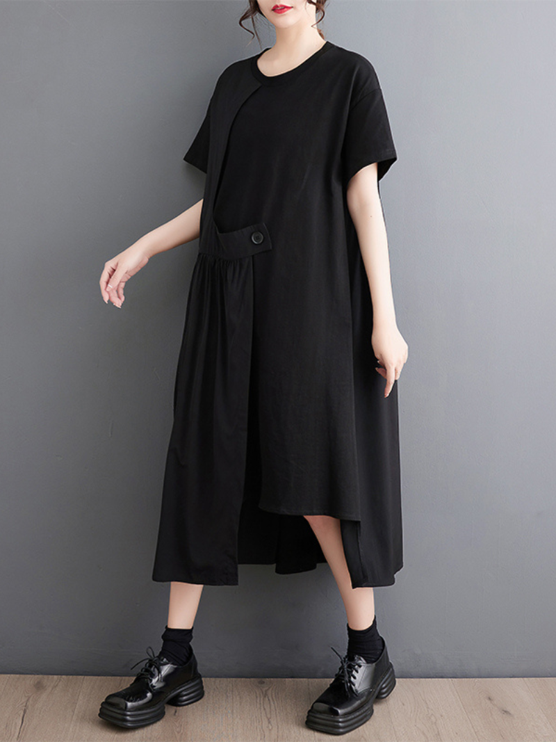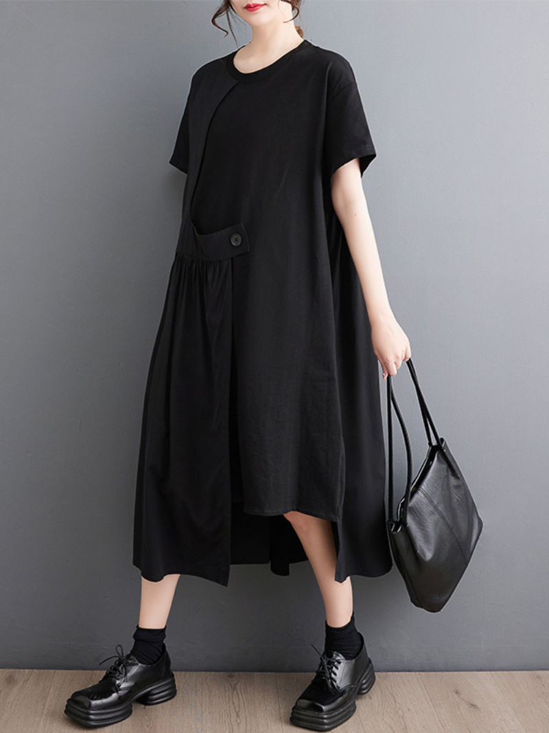 Dieses schlichte, aber stilvolle schwarze Kleid ist aus angenehmer Baumwolle gefertigt. Es hat einen klassischen Rundhalsausschnitt und kurze Ärmel und bietet eine bequeme und entspannte Passform. Das schlichte Muster macht es zu einem vielseitigen Kleidungsstück, das zu jedem Anlass elegant oder leger getragen werden kann. Sein Pendler-Stil macht es zur perfekten Wahl für den beruflichen oder legeren Alltag. Dieses Kleid ist in zwei Größen erhältlich: S/M und bietet eine bequeme und schmeichelhafte Passform für alle Körpertypen. Das hochwertige Baumwollmaterial sorgt für Atmungsaktivität und Strapazierfähigkeit und ist somit für alle Jahreszeiten geeignet. Dieses schwarze Kleid ist eine zeitlose Ergänzung für jede Garderobe und bietet einen mühelosen und schicken Look, der auf verschiedene Arten gestylt werden kann.