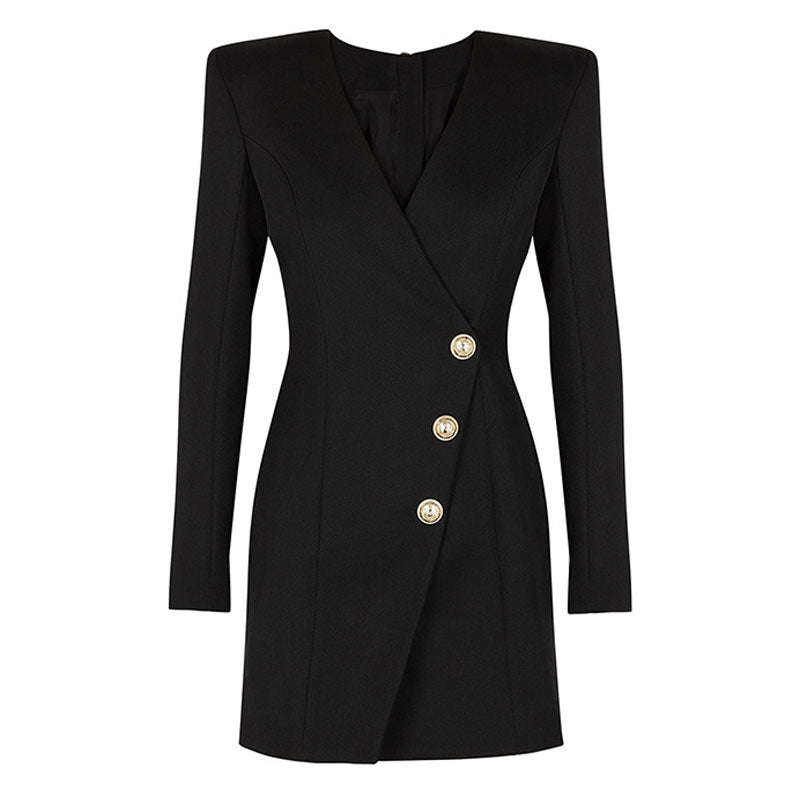 Nous n'avions jamais imaginé à quel point nous avions besoin d'un blazer sur mesure jusqu'à maintenant. Notre blazer de créateur a incontestablement l'air luxueux et rehaussera même les tenues en jean les plus simples. Le blazer long et élégant est doté d'une silhouette asymétrique à boutonnage simple avec une taille à pinces pour un look sophistiqué et sur mesure. La coupe slim présente des manches longues, des épaulettes et un décolleté en V sans col et est décorée de boutons dorés en relief sur les poignets. Il est doté d'une fermeture à glissière métallique apparente au dos pour un enfilage et un retrait faciles. Mettez en valeur votre jambe en associant ce blazer au short ou à la jupe assortis, car cette pièce séduisante est sûre d'ajouter une élégance inexplicable à votre ensemble. Au fait, nous adorons l'idéal des manches froncées.