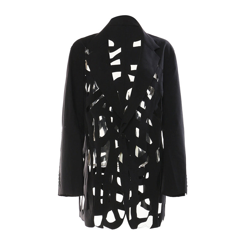 Lorsque vous souhaitez faire une déclaration plus importante, c'est celui-là. La marque de créateur établit la norme en matière de design contemporain avec des découpes géométriques au laser de l'avant à l'arrière. Doté d'un col à revers, de manches longues avec poignets boutonnés et d'une fermeture à boutonnage simple. Ce blazer conserve une coupe oversize pour un look et une sensation modernes. Brouillant les frontières entre la mode et l'art. Il peut être assorti à votre haut tube préféré de LUXE, à un pantalon et à des talons tendance. qui ajouteront une touche avant-gardiste à votre look.