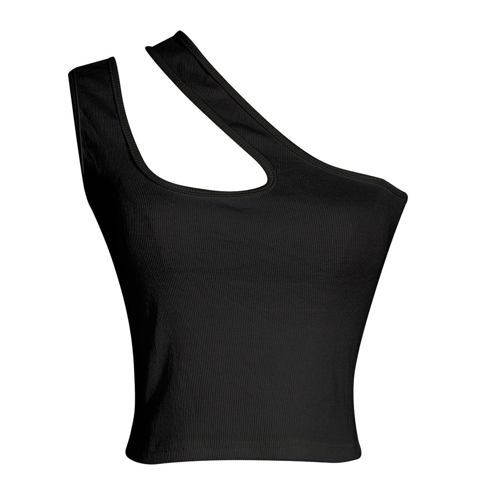 Confectionné avec soin à l'aide d'une technique de côtes douces, ce haut en tricot de créateur est votre basique indispensable au quotidien que vous porterez littéralement tout l'été. Classique et inhabituel. Le débardeur uni est conçu avec une longueur courte et une double bretelle asymétrique suspendue sur une épaule. Le tricot élastique offre suffisamment d'élasticité pour vous s'adapter confortablement et est disponible en blanc et en noir. Associez-le au haut froncé sans bretelles assorti de notre collection de créateurs pour un look féminin moderne.