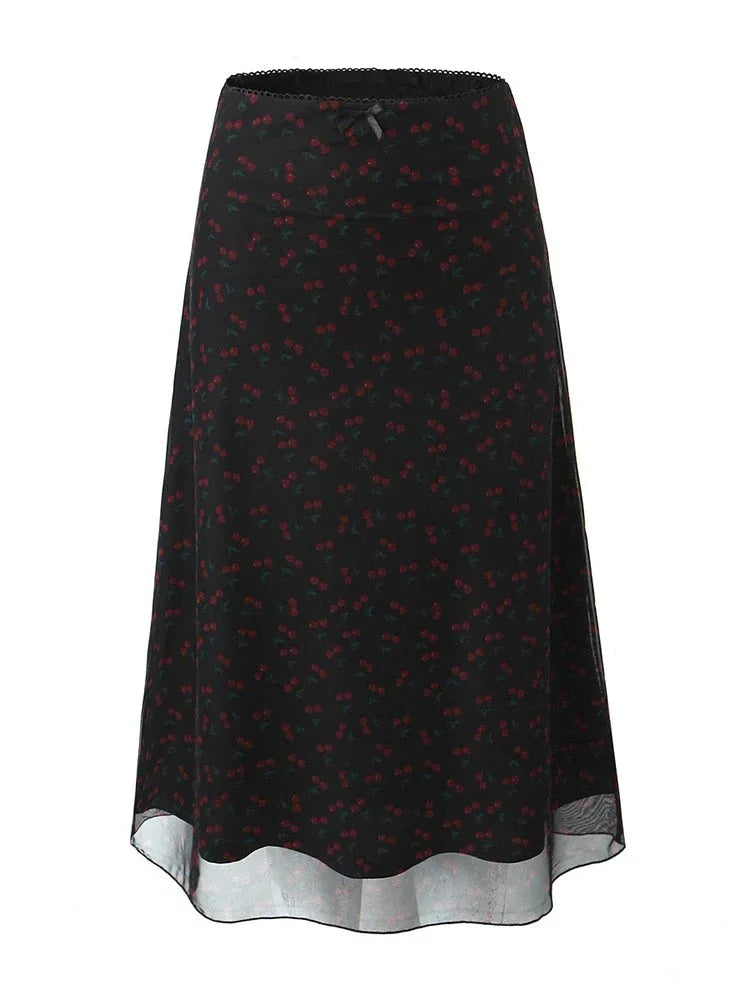 The Cherished Skirt is a flowy. versatile piece adorned with delicate cherry patterns. It's perfect for casual outings or a touch of elegance in your everyday look.