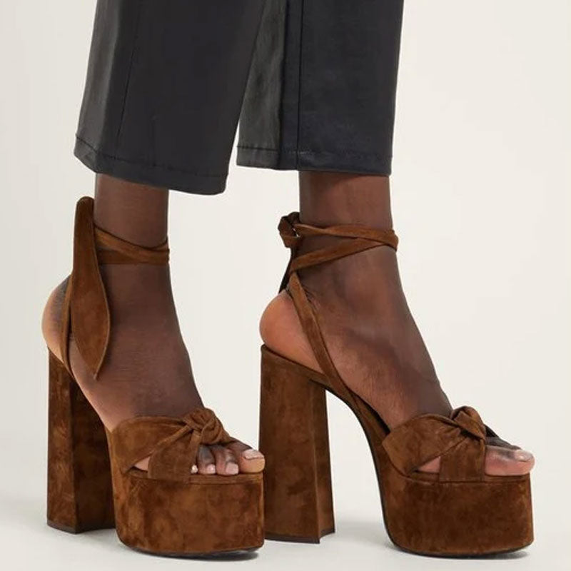 Marchez en toute confiance avec ces chaussures d'une perfection vertigineuse qui rehausseront votre personnalité jusqu'à 5,7 pouces sans compromettre le confort et la stabilité grâce à leur talon épais sculpté et à leur plateforme de 2,17 pouces. Elles sont fabriquées avec un tissu en faux suède à l'extérieur et présentent une jolie construction en vemp noué avec un design à bout en amande ouvert. Nous adorons le style dos nu et les brides féminines enveloppantes à la cheville qui compensent l'encombrement apporté par la semelle extérieure épaisse. Ce sont d'excellents investissements qui peuvent être intégrés à de nombreuses tenues, du travail à un happy hour ou à un dîner. Sortez-les et associez-les à vos robes préférées pour un impact maximal.