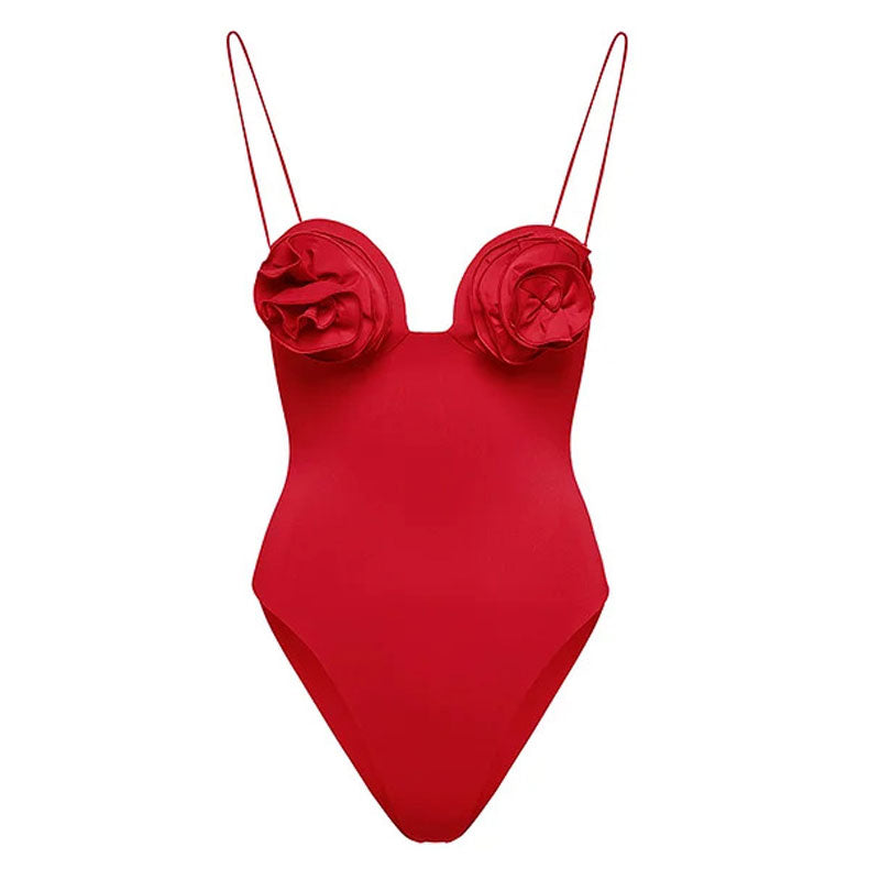 Planifiez votre escapade estivale avec ce maillot de bain chic et sans effort à rosace. Ce maillot de bain une pièce captivant de créateur de couleur rouge riche est un mélange parfait d'audace et de sophistication. Il présente une applique florale 3D vivante sur le décolleté audacieux en cœur ajoutant une touche de féminité et d'allure. tandis que la coupe effrontée offre un look audacieux et élégant. Ne se limite pas au plaisir au bord de la piscine. Vous pouvez l'associer astucieusement à une jupe courte pour la fête. Sous les projecteurs. Faites rayonner votre charme distinct et devenez le centre d'attention. Planifiez votre été avec ce maillot de bain accrocheur. et soyez la star brillante de n'importe quelle fête ou rassemblement.
