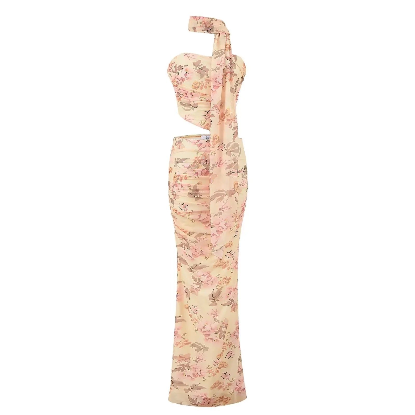 The Valen Set is a stylish and elegant two-piece outfit with a flattering fit. The set includes a corset-style top and a high-waisted skirt. The soft floral pattern and the tie-up detail make this set perfect for various occasions. The fabric ensures comfort. and the design offers a flattering silhouette.