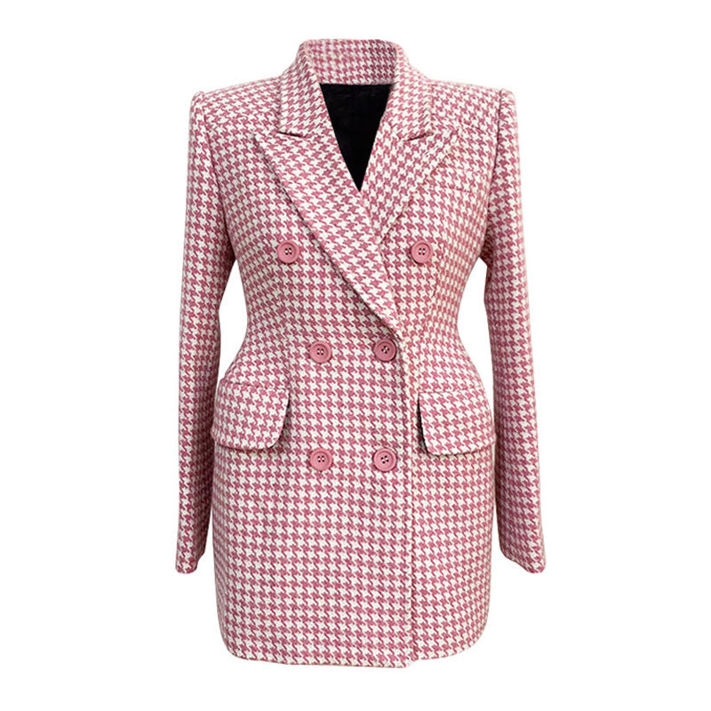 Offrant une touche d'élégance à la française, ce blazer d'hiver de notre collection F/W de créateurs vaut son prix. Confectionné en laine épaisse pour se protéger du froid, ce blazer blanc et rose est orné d'imprimés pied-de-poule emblématiques. Il présente des épaules rembourrées, des manches longues, des revers en pointe et des poches à rabat sur le devant. Ce qui fait de cette pièce un classique qui ne se démode jamais. Les boutons ton sur ton ornent le blazer croisé d'une ambiance vintage unique. Superposez-le sur un haut en tricot et ajoutez un jean et des bottines pour un look confortable sans effort du lundi au dimanche.