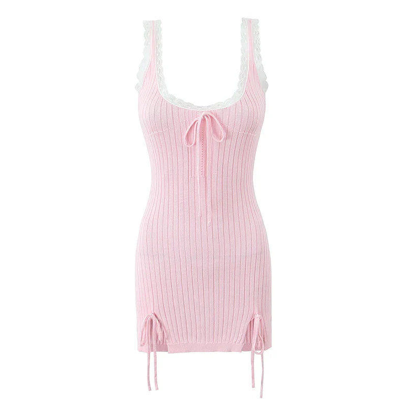 The Wilma Dress is a chic and comfortable ribbed knit dress that offers a flattering fitted look. Featuring adjustable side ties. a scoop neckline. and a soft texture. this dress is perfect for casual outings or relaxed days at home.