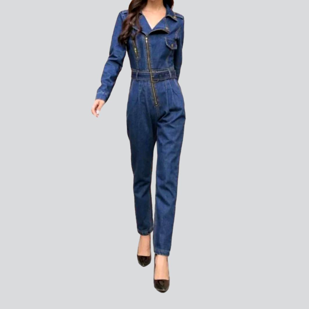 Réinventez votre style avec cette combinaison en denim slim délavé moyen millennium de la collection printemps-été 2023 ! Cette combinaison est la combinaison parfaite du chic moderne et de la nostalgie vintage. Elle présente une finition sablée, des imprimés peints complexes et une fermeture à glissière unique.