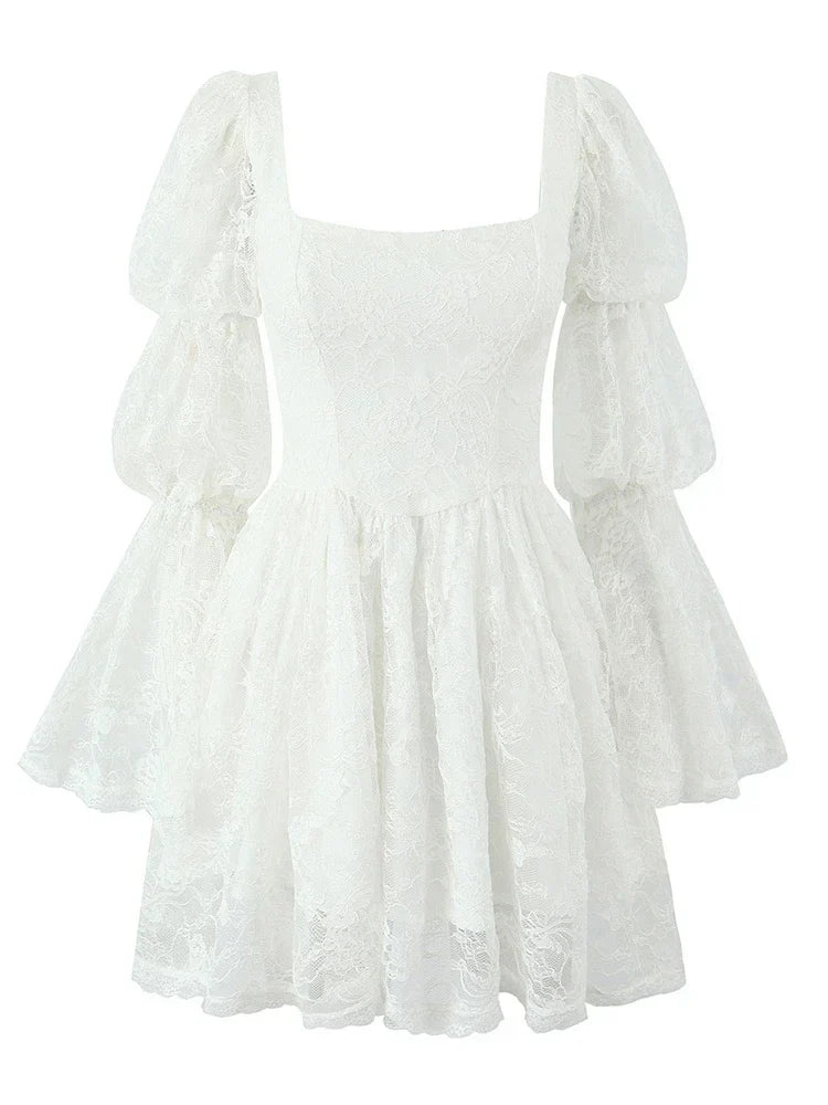 The "Flirty Dress" features a charming lace design with puffed sleeves. perfect for making a statement at any occasion.