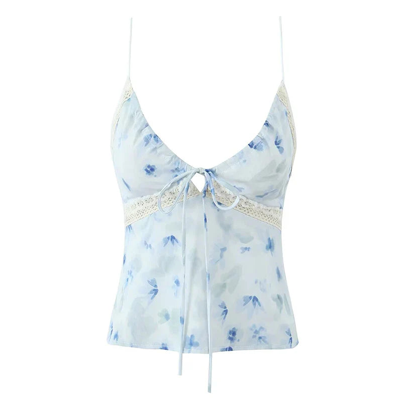 The **A Walk in the Clouds Top** is an elegant and airy piece with a soft floral design. It features a tie-front closure and lace details for a chic. summery vibe. Perfect for casual outings or beach days!