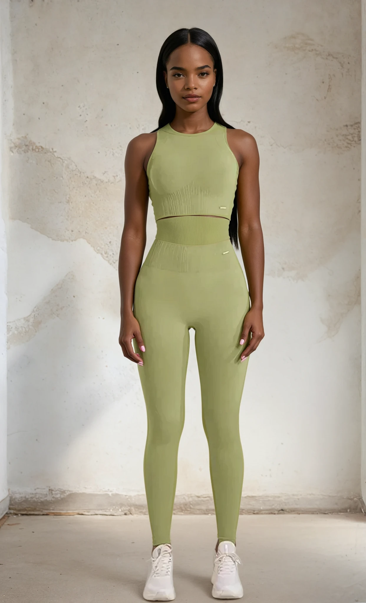 The Alora Set is a chic two-piece outfit available in six colors. featuring a fitted top and high-waisted bottoms for a sleek and modern look.