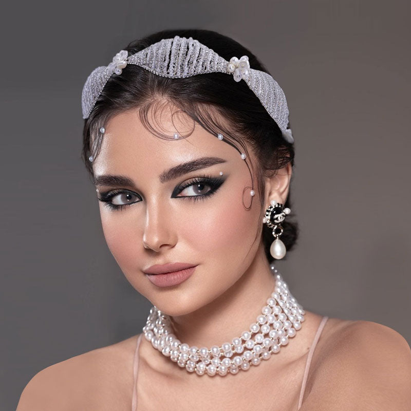 Make your next event unforgettable with this crystal embellished headband. Made of silver-tone hardware. embellished with a contoured construction. featuring glittering gemstones along with transparent coated beads. a flexible band accented with cultured pearls and faceted crystals. side pin loops ended up with self-tie mesh ribbons. Find more trendy women's bridal headbands or unique hair accessories in our boutique. and complete a retro look with a baroque necklace.