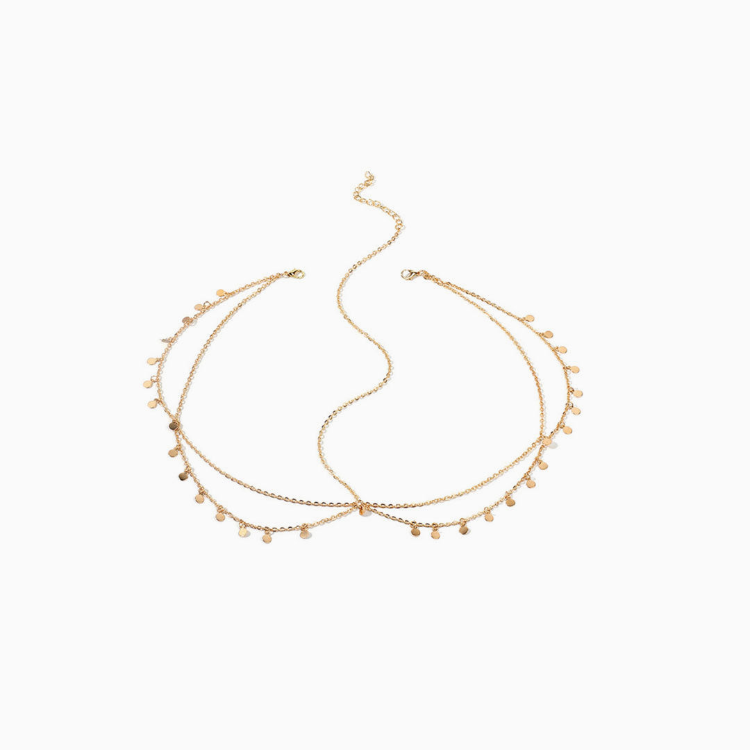 Work this bohemian headpiece at your next beach holiday. Made of golden metal. embellished with discs pendants. featuring criss-cross chains that drapes around your hair. an extended chain for an adjustable fit. Find more trendy women's hair chains or chic hairwear in our boutique. and finish the chic boho look with our unique hair accessories.