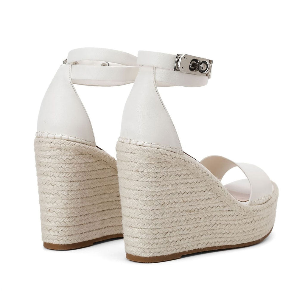 Wedge espadrilles always remind us of the summer vacations. Actually. they're ideal for everyday work just as well on holiday as they do in real life. Chic and so much more comfortable than spindly stilettos. they sit on towering 4.72-inch wedges approximately and balanced by stacked platforms which offer desired height yet without sacrificing comfort. The monochromatic single band upper comes with an open round toe silhouette and leads to wraparound ankle straps with a metallic buckle closure for keeping secure and stable on the foot. Destined to make them a breathable footwear. they are sweat-free that can be worn all summer and well into fall. Pair them with lovely floral midi dresses and a casual canva bag for an effortless-chic style.