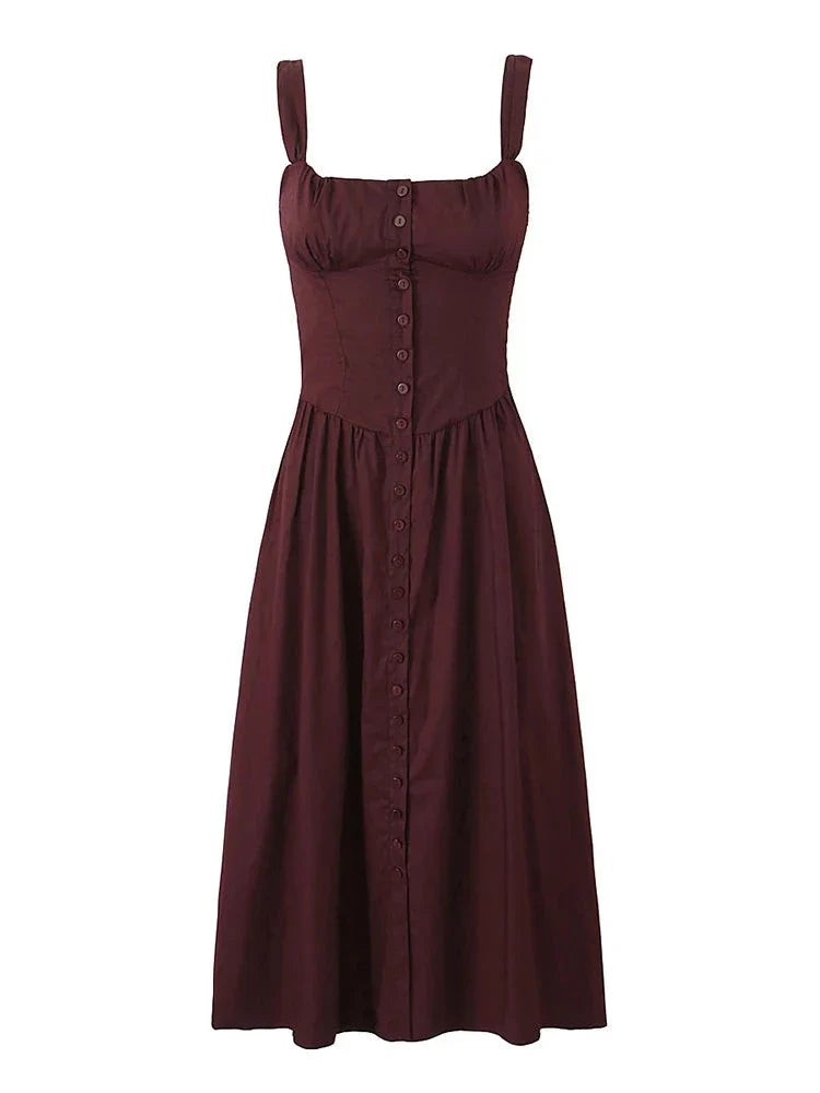 The Chic After Dark Dress is a perfect blend of elegance and comfort. With its button-up design and rich color. this dress is ideal for evening events or a night out.