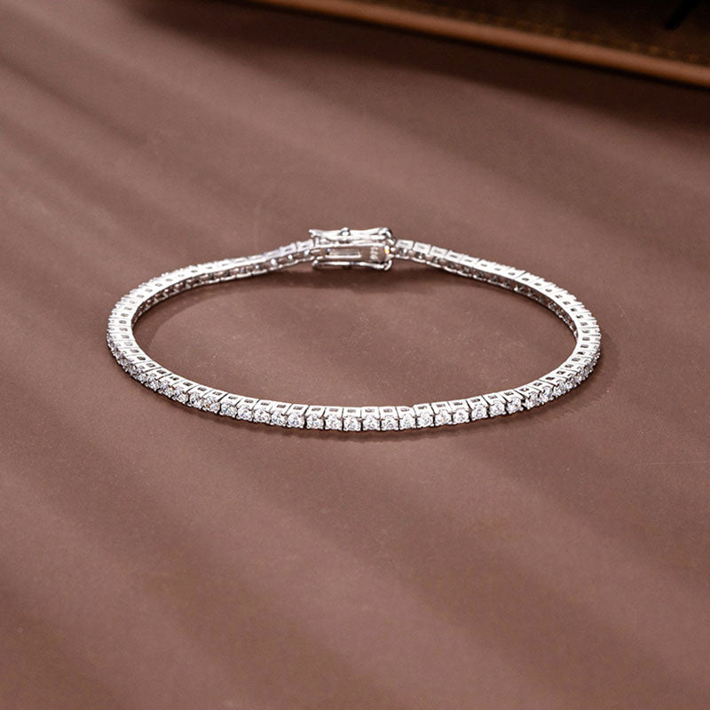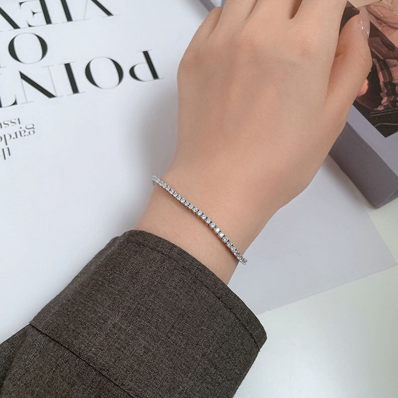 Attain a classic elegance with our minimalist designer tennis bracelet. It's a versatile and practical fashion staple. perfect for beginners in accessorizing. Affordable yet glowing brilliance. it effortlessly elevates any look.